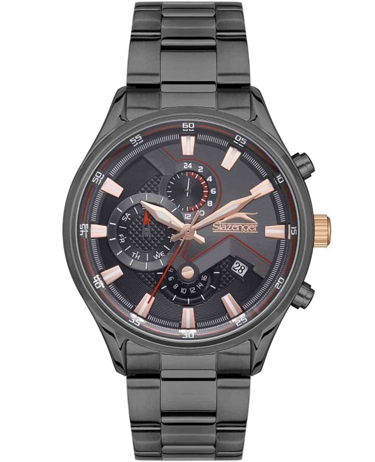 Часы Slazenger SL.09.2146.2.04 – это стильный и функциональный аксессуар для мужчин, сочетающий в себе английскую элегантность и современные технологии. Эти кварцевые часы оснащены металлическим корпусом с черным IP-покрытиемIP-покрытиеМетод ионного напыления. Демонстрирует повышенную устойчивость к истиранию, окислению и химическим веществам. Под воздействием высокого давления и температуры около 1500°C молекулы металла надёжно соединяются с частицами корпуса часов. и прочным минеральным стекломМинеральное стеклоМинеральное стекло представляет собой искусственно выращенный минерал кварца. Такое стекло отличается особой устойчивостью к повреждениям и царапинам. Уступает по некоторым качествам сапфировому стеклу., обеспечивающим надежную защиту механизма. Неподвижный безельБезельВнешний ободок, закрепляющий стекло. В спортивных часах так называется поворотное кольцо с делениями на циферблате, выполняет роль таймера – замеряет отрезки времени на шкале. Неподвижный безель – элемент декора. Однонаправленно вращающийся безель на дайверских часах позволяет фиксировать моменты погружения и выныривания на поверхность. из суперметалла с черным IP-покрытиемIP-покрытиеМетод ионного напыления. Демонстрирует повышенную устойчивость к истиранию, окислению и химическим веществам. Под воздействием высокого давления и температуры около 1500°C молекулы металла надёжно соединяются с частицами корпуса часов.. Черный металлический браслет с черным IP-покрытиемIP-покрытиеМетод ионного напыления. Демонстрирует повышенную устойчивость к истиранию, окислению и химическим веществам. Под воздействием высокого давления и температуры около 1500°C молекулы металла надёжно соединяются с частицами корпуса часов. и с раскладной застёжкойРаскладная застёжкаТакой тип застёжки используется только на браслетах из металла. Она никогда не раскрывается полностью, происходит разделение на 2 и более частей. Раскладывающая застёжка снизит вероятность потери часов к минимуму. обеспечивает комфортное ношение и надежную фиксацию на запястье. Диаметр корпуса составляет 45 мм, а толщина – 12 мм, что делает часы заметными и солидными на руке. Водозащита уровня WR 50 позволяет не беспокоиться о случайных брызгах или дожде. Люминесцентное покрытиеЛюминесцентное покрытиеПозволяет считывать показания времени в темноте. Производители наносят на стрелки, часовые индексы, безель или поверхность циферблата светонакопительный состав, дающий холодное свечение. на стрелках и метках обеспечивает отличную видимость в темноте. Часы также оснащены дополнительными функциями, такими как отображение второго часового пояса, дня недели и текущего времени в 24-часовом формате, а также окошком даты. Вес часов – 150 грамм, что придает им ощущение надежности и прочности. Эти часы станут отличным выбором для тех, кто ценит качество, стиль и функциональность.