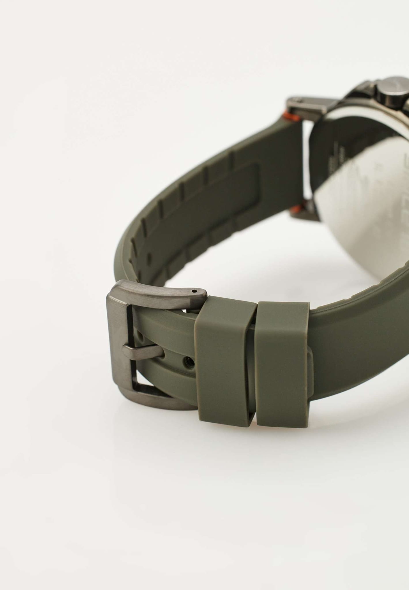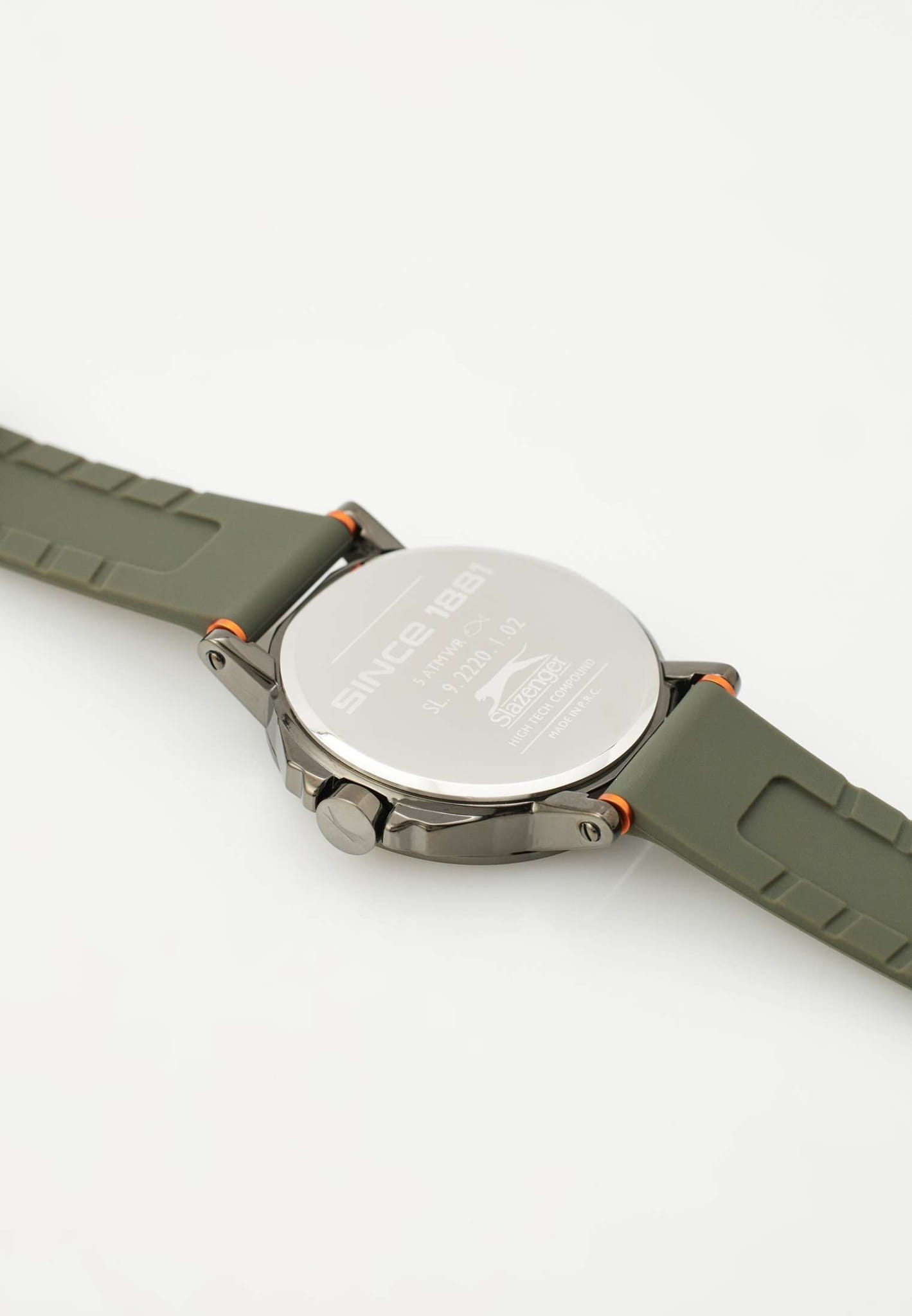 Стильные наручные часы Slazenger SL.09.2220.1.02 сочетают современный дизайн и практичность для повседневного использования. Крупный корпус диаметром 48 мм выполнен из прочного металла IP-покрытиемIP-покрытиеМетод ионного напыления. Демонстрирует повышенную устойчивость к истиранию, окислению и химическим веществам. Под воздействием высокого давления и температуры около 1500°C молекулы металла надёжно соединяются с частицами корпуса часов., а минеральное стеклоМинеральное стеклоМинеральное стекло представляет собой искусственно выращенный минерал кварца. Такое стекло отличается особой устойчивостью к повреждениям и царапинам. Уступает по некоторым качествам сапфировому стеклу. обеспечивает дополнительную защиту темно-зеленого циферблата от царапин. Модель оснащена надежным кварцевым механизмом и имеет водозащиту класса WR 50, что позволяет не снимать часы при мытье рук или во время дождя. Ремешок цвета хаки из мягкого и долговечного силикона удобно сидит на запястье и фиксируется классической застежкой. Часы весят всего 86 грамм, что делает их комфортными для ежедневной носки. Заводная головка оснащена защитой, что предотвращает случайное повреждение. Эта модель станет надежным и стильным аксессуаром для тех, кто ценит качество и функциональность.