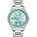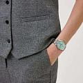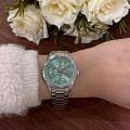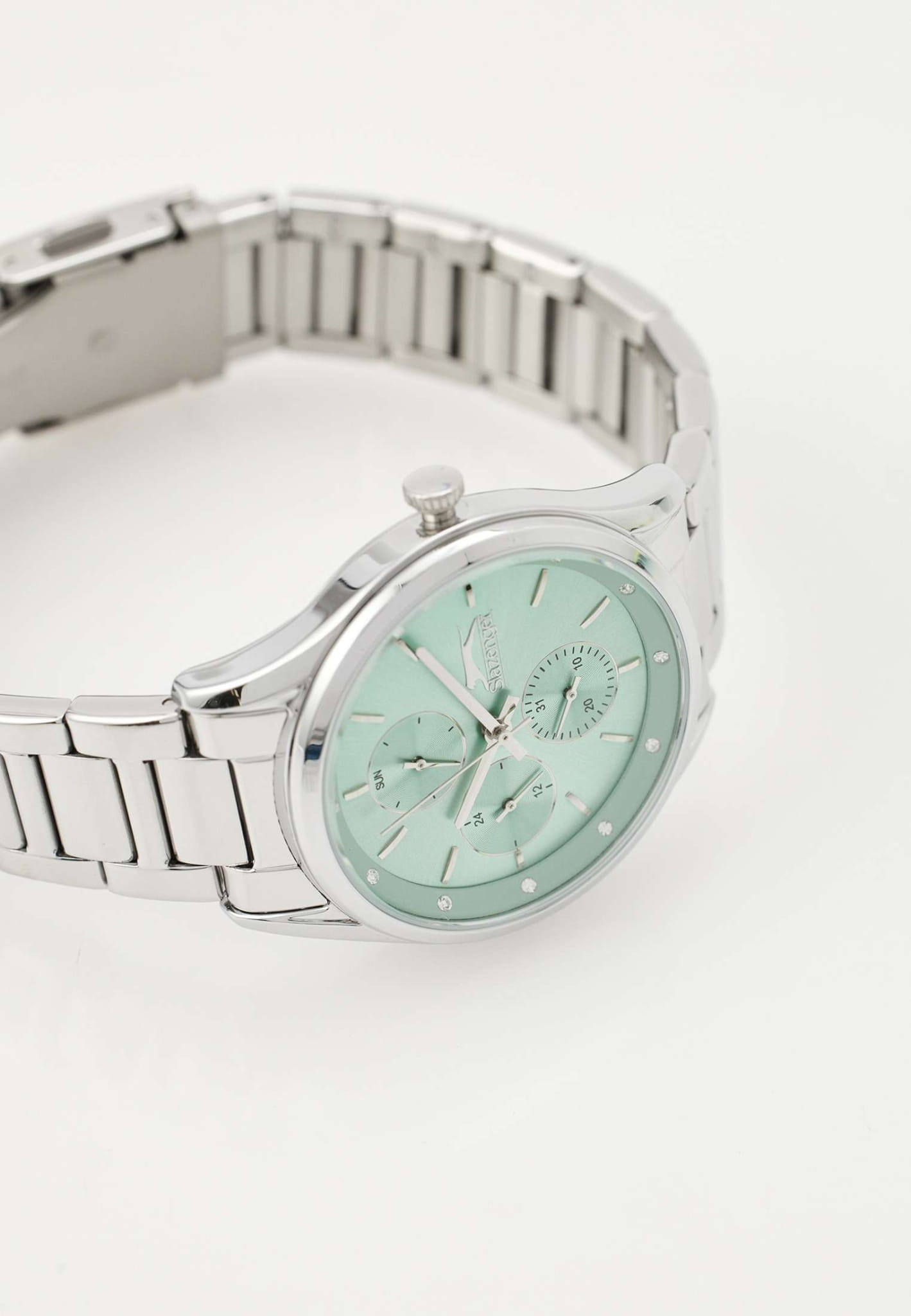 Часы Slazenger SL.09.2229.4.06 — это стильная и элегантная модель, созданная для современных женщин, ценящих изысканный дизайн и функциональность. Корпус и браслет выполнены из прочного металла серебристого цвета, что придает аксессуару особую утонченность. Бирюзовый циферблат украшен мерцающими кристаллами, а также оснащён дополнительными малыми циферблатами, которые отображают дату, день недели и время в 24-часовом формате. Минеральное стеклоМинеральное стеклоМинеральное стекло представляет собой искусственно выращенный минерал кварца. Такое стекло отличается особой устойчивостью к повреждениям и царапинам. Уступает по некоторым качествам сапфировому стеклу. надежно защищает часы от царапин, а водозащита уровня WR 30 позволяет не беспокоиться о случайном попадании влаги. Металлический браслет снабжён удобной раскладной застёжкойРаскладная застёжкаТакой тип застёжки используется только на браслетах из металла. Она никогда не раскрывается полностью, происходит разделение на 2 и более частей. Раскладывающая застёжка снизит вероятность потери часов к минимуму.. Диаметр корпуса составляет 36 мм, толщина — 9 мм, а вес — 82 грамма, что обеспечивает комфортное ношение в течение всего дня. Часы оснащены кварцевым механизмом.