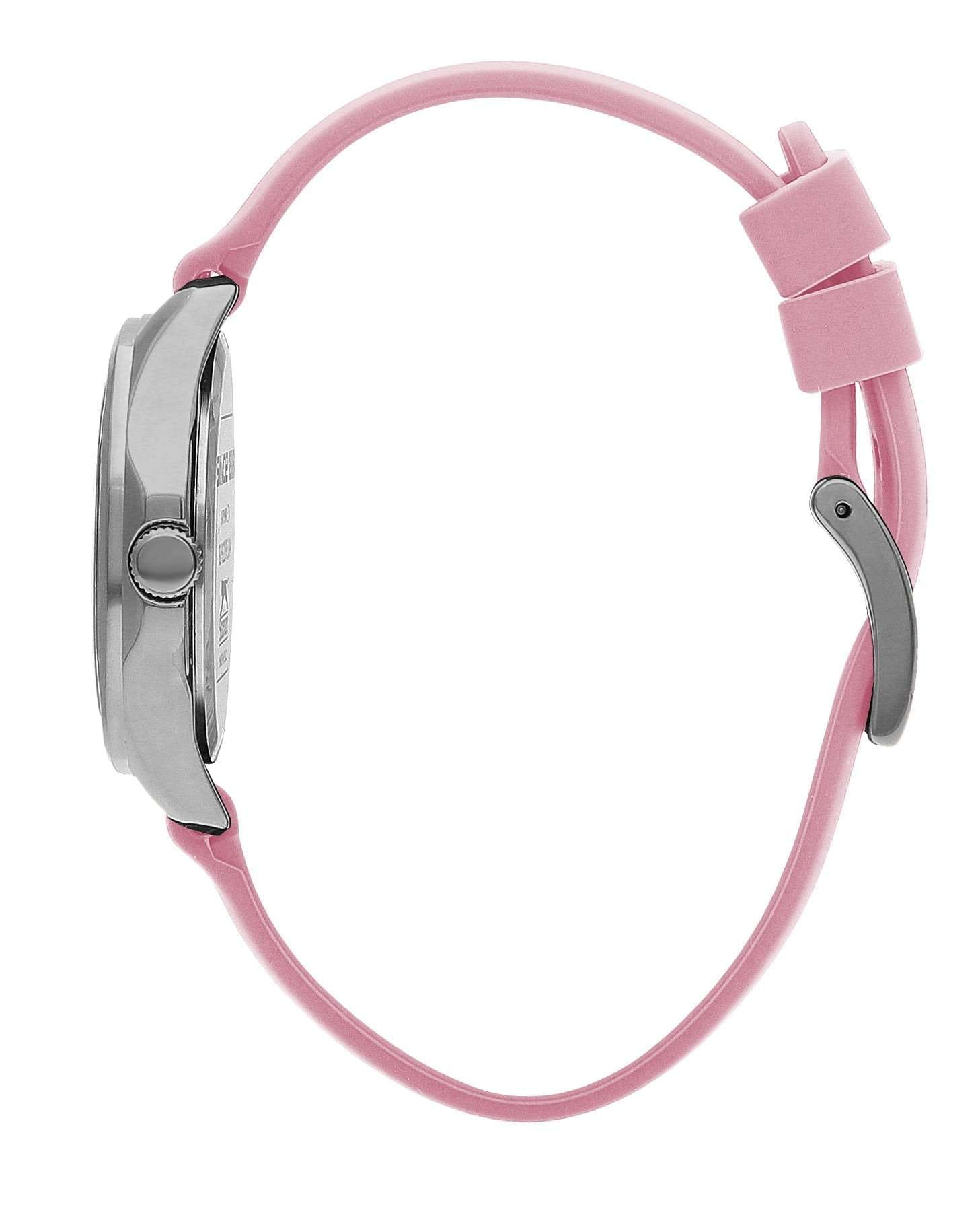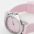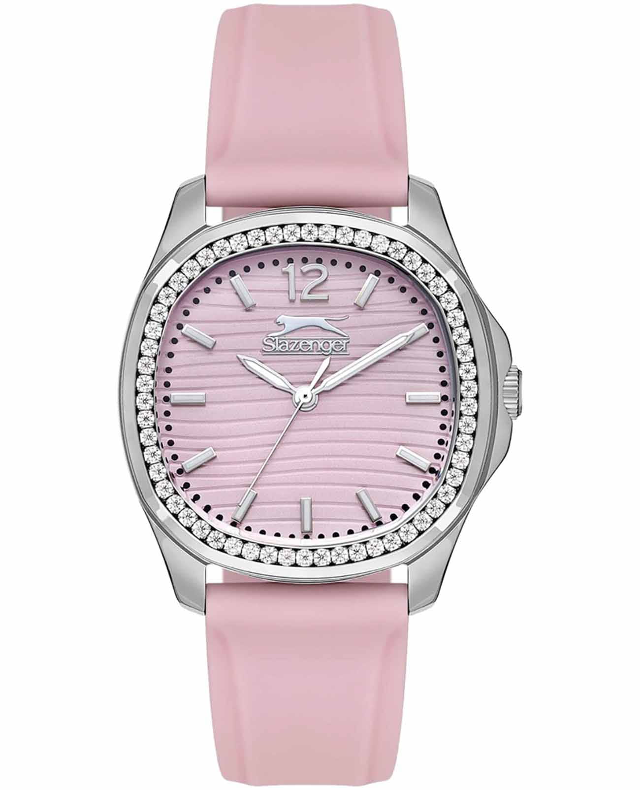 Часы Slazenger SL.09.2239.3.07 – это изысканный аксессуар, который станет стильным акцентом любого образа. Модель оснащена надежным кварцевым механизмом. Корпус из прочного металла размером 34х34 мм украшен россыпью сверкающих фианитов по безелюБезельВнешний ободок, закрепляющий стекло. В спортивных часах так называется поворотное кольцо с делениями на циферблате, выполняет роль таймера – замеряет отрезки времени на шкале. Неподвижный безель – элемент декора. Однонаправленно вращающийся безель на дайверских часах позволяет фиксировать моменты погружения и выныривания на поверхность., что придает часам особое сияние и элегантность. Розовый циферблат с логотипом бренда защищен стойким к царапинам минеральным стекломМинеральное стеклоМинеральное стекло представляет собой искусственно выращенный минерал кварца. Такое стекло отличается особой устойчивостью к повреждениям и царапинам. Уступает по некоторым качествам сапфировому стеклу.. Четкие часовые метки в виде лаконичных штрихов и крупная арабская цифра 12 обеспечивают удобство чтения времени. Заводная головка с рифлением дополнена защитой для повышения долговечности. Резиновый нежно-розовый ремешок шириной 18 мм надежно фиксируется на запястье с помощью классической застежки. Для удобства использования в темное время суток предусмотрено люминесцентное покрытиеЛюминесцентное покрытиеПозволяет считывать показания времени в темноте. Производители наносят на стрелки, часовые индексы, безель или поверхность циферблата светонакопительный состав, дающий холодное свечение. стрелок. Водозащита 30WR позволяет не беспокоиться о случайных брызгах. Вес изделия составляет 43 грамма, что делает часы комфортными для ежедневного ношения. Эти часы идеально подойдут для тех, кто ценит гармонию стиля, качества и функциональности.