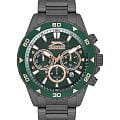 Часы Slazenger SL.09.2250.2.02 — это стильная и практичная модель, выполненная в элегантном черном цвете. Корпус и браслет изготовлены из металла с IP-покрытиемIP-покрытиеМетод ионного напыления. Демонстрирует повышенную устойчивость к истиранию, окислению и химическим веществам. Под воздействием высокого давления и температуры около 1500°C молекулы металла надёжно соединяются с частицами корпуса часов., что обеспечивает прочность и долговечность. На безельБезельВнешний ободок, закрепляющий стекло. В спортивных часах так называется поворотное кольцо с делениями на циферблате, выполняет роль таймера – замеряет отрезки времени на шкале. Неподвижный безель – элемент декора. Однонаправленно вращающийся безель на дайверских часах позволяет фиксировать моменты погружения и выныривания на поверхность. нанесено зеленое IP-покрытиеIP-покрытиеМетод ионного напыления. Демонстрирует повышенную устойчивость к истиранию, окислению и химическим веществам. Под воздействием высокого давления и температуры около 1500°C молекулы металла надёжно соединяются с частицами корпуса часов.. Минеральное стеклоМинеральное стеклоМинеральное стекло представляет собой искусственно выращенный минерал кварца. Такое стекло отличается особой устойчивостью к повреждениям и царапинам. Уступает по некоторым качествам сапфировому стеклу. надежно защищает зеленый циферблат от царапин и повреждений. Диаметр корпуса составляет 44 мм, а толщина — 11 мм, благодаря чему часы смотрятся солидно и современно. Модель оснащена кварцевым механизмом, отличающимся точностью и надежностью. На циферблате представлены дополнительные малые циферблаты для отображения второго часового поясаВторой часовой поясФункция, позволяющая отображать время двух часовых поясов одновременно., дня недели и времени в 24-часовом формате, а также имеется отдельное окошко даты. Для удобства использования в темное время суток предусмотрено люминесцентное покрытиеЛюминесцентное покрытиеПозволяет считывать показания времени в темноте. Производители наносят на стрелки, часовые индексы, безель или поверхность циферблата светонакопительный состав, дающий холодное свечение. стрелок и меток. Удобный металлический браслет шириной 22 мм снабжен раскладной застёжкойРаскладная застёжкаТакой тип застёжки используется только на браслетах из металла. Она никогда не раскрывается полностью, происходит разделение на 2 и более частей. Раскладывающая застёжка снизит вероятность потери часов к минимуму., обеспечивающей надежную фиксацию на запястье. Заводная головка оснащена защитой. Водозащита уровня WR 50 позволяет не снимать часы при мытье рук или попадании под дождь. Вес модели составляет 152 грамм.