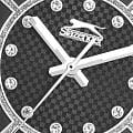 Женские наручные часы Slazenger SL.09.2295.3.01 — это элегантный аксессуар, который подчеркнет утончённый стиль своей обладательницы. Корпус диаметром 36 мм и толщиной 11,5 мм выполнен из прочного металла и надёжно защищён минеральным стекломМинеральное стеклоМинеральное стекло представляет собой искусственно выращенный минерал кварца. Такое стекло отличается особой устойчивостью к повреждениям и царапинам. Уступает по некоторым качествам сапфировому стеклу., устойчивым к царапинам. Черный циферблат украшен изящными кристаллами, придающими часам особый блеск и изысканность. Модель оснащена люминесцентным покрытиемЛюминесцентное покрытиеПозволяет считывать показания времени в темноте. Производители наносят на стрелки, часовые индексы, безель или поверхность циферблата светонакопительный состав, дающий холодное свечение. стрелок, что облегчает считывание времени в темноте. Особое внимание привлекает безельБезельВнешний ободок, закрепляющий стекло. В спортивных часах так называется поворотное кольцо с делениями на циферблате, выполняет роль таймера – замеряет отрезки времени на шкале. Неподвижный безель – элемент декора. Однонаправленно вращающийся безель на дайверских часах позволяет фиксировать моменты погружения и выныривания на поверхность. с черным IP-покрытиемIP-покрытиеМетод ионного напыления. Демонстрирует повышенную устойчивость к истиранию, окислению и химическим веществам. Под воздействием высокого давления и температуры около 1500°C молекулы металла надёжно соединяются с частицами корпуса часов.. Серебристый металлический браслет шириной 16 мм оснащён удобной раскладной застёжкойРаскладная застёжкаТакой тип застёжки используется только на браслетах из металла. Она никогда не раскрывается полностью, происходит разделение на 2 и более частей. Раскладывающая застёжка снизит вероятность потери часов к минимуму. для комфортной посадки на запястье. Кварцевый механизм обеспечивает точность хода, а водозащита уровня WR 30 защищает часы от случайных брызг. Для удобства в условиях плохой освещённости предусмотрена подсветка стрелок. Вес изделия составляет 95 граммов.