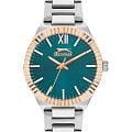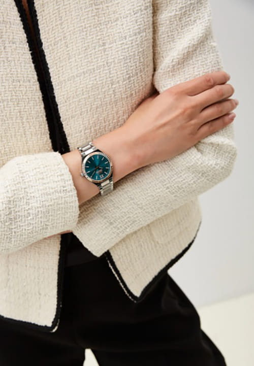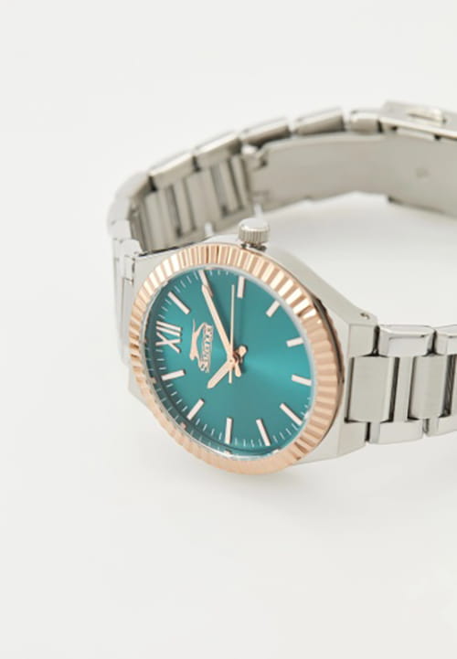 Женские кварцевые часы Slazenger SL.09.2304.3.07 — это элегантный и стильный аксессуар, идеально дополняющий любой образ. безель выполнен из суперметалла с IP-покрытиемIP-покрытиеМетод ионного напыления. Демонстрирует повышенную устойчивость к истиранию, окислению и химическим веществам. Под воздействием высокого давления и температуры около 1500°C молекулы металла надёжно соединяются с частицами корпуса часов., защищён минеральным стекломМинеральное стеклоМинеральное стекло представляет собой искусственно выращенный минерал кварца. Такое стекло отличается особой устойчивостью к повреждениям и царапинам. Уступает по некоторым качествам сапфировому стеклу.. Циферблат зелёного цвета оформлен в классическом стиле, стрелки оснащены люминесцентным покрытиемЛюминесцентное покрытиеПозволяет считывать показания времени в темноте. Производители наносят на стрелки, часовые индексы, безель или поверхность циферблата светонакопительный состав, дающий холодное свечение., обеспечивающим хорошую читаемость в темноте. Браслет из суперметалла фиксируется на раскладной застёжкеРаскладная застёжкаТакой тип застёжки используется только на браслетах из металла. Она никогда не раскрывается полностью, происходит разделение на 2 и более частей. Раскладывающая застёжка снизит вероятность потери часов к минимуму., обеспечивая надёжность и комфорт ношения. Водонепроницаемость 30 м позволяет использовать часы в повседневных условиях, защищая от случайных брызг и капель дождя. Модель сочетает в себе лёгкость, прочность и изысканный внешний вид.