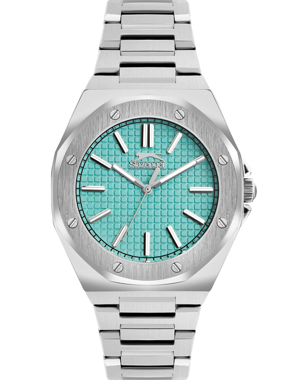 Мужские кварцевые часы Slazenger SL.09.2305.1.06 — это стильный и надёжный аксессуар, сочетающий современный дизайн и прочность. Корпус и браслет выполнены из суперметалла, защищён минеральным стекломМинеральное стеклоМинеральное стекло представляет собой искусственно выращенный минерал кварца. Такое стекло отличается особой устойчивостью к повреждениям и царапинам. Уступает по некоторым качествам сапфировому стеклу.. Циферблат бирюзового цвета оформлен в классическом стиле, стрелки оснащены люминесцентным покрытиемЛюминесцентное покрытиеПозволяет считывать показания времени в темноте. Производители наносят на стрелки, часовые индексы, безель или поверхность циферблата светонакопительный состав, дающий холодное свечение., обеспечивающим хорошую читаемость в темноте. Заводная головка снабжена защитой, а задняя крышка — завинчивающаяся, что повышает надёжность конструкции. Браслет из суперметалла фиксируется на раскладной застёжкеРаскладная застёжкаТакой тип застёжки используется только на браслетах из металла. Она никогда не раскрывается полностью, происходит разделение на 2 и более частей. Раскладывающая застёжка снизит вероятность потери часов к минимуму., обеспечивая удобство и безопасность ношения. Водонепроницаемость 50 м позволяет использовать часы в повседневных условиях, защищая от случайных брызг и капель дождя. Модель подчёркивает индивидуальность владельца и идеально подходит как для повседневного, так и для делового образа.