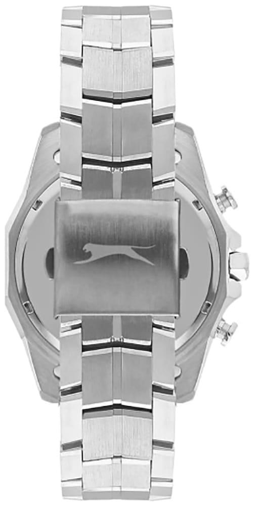 Мужские кварцевые часы Slazenger SL.09.2312.2.06 — это выразительный и функциональный аксессуар, сочетающий прочность, стиль и насыщенную комплектацию. Корпус выполнен из суперметалла, защищён минеральным стекломМинеральное стеклоМинеральное стекло представляет собой искусственно выращенный минерал кварца. Такое стекло отличается особой устойчивостью к повреждениям и царапинам. Уступает по некоторым качествам сапфировому стеклу.. Циферблат чёрно-голубого цвета оформлен с вынесенными малыми циферблатами для индикации дня недели, даты и времени в 24-часовом формате. Стрелки и метки оснащены люминесцентным покрытиемЛюминесцентное покрытиеПозволяет считывать показания времени в темноте. Производители наносят на стрелки, часовые индексы, безель или поверхность циферблата светонакопительный состав, дающий холодное свечение., обеспечивающим хорошую читаемость в темноте. Заводная головка снабжена защитой, а задняя крышка — завинчивающаяся, что повышает надёжность конструкции. Браслет из суперметалла фиксируется на раскладной застёжкеРаскладная застёжкаТакой тип застёжки используется только на браслетах из металла. Она никогда не раскрывается полностью, происходит разделение на 2 и более частей. Раскладывающая застёжка снизит вероятность потери часов к минимуму., обеспечивая удобство и безопасность ношения. Водонепроницаемость 50 м позволяет использовать часы в повседневных условиях, защищая от случайных брызг и капель дождя. Модель подчёркивает индивидуальность владельца и идеально подходит как для повседневного, так и для делового образа.