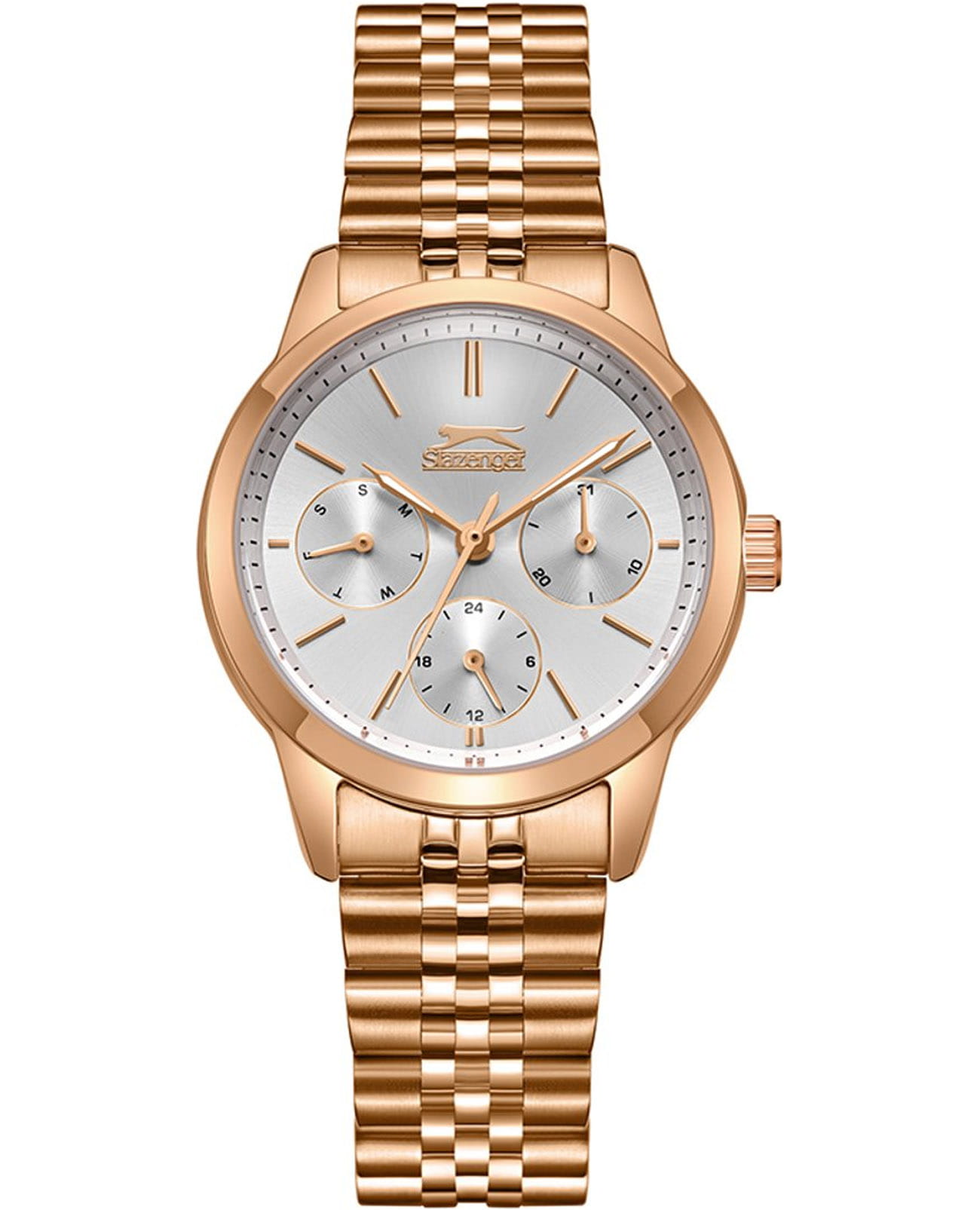 Женские элегантные наручные часы Slazenger SL.09.2336.4.05 сочетают в себе современный стиль и функциональность. Корпус выполнен из суперметалла с IP-покрытиемIP-покрытиеМетод ионного напыления. Демонстрирует повышенную устойчивость к истиранию, окислению и химическим веществам. Под воздействием высокого давления и температуры около 1500°C молекулы металла надёжно соединяются с частицами корпуса часов., придающий модели дополнительную прочность и элегантный внешний вид. Изысканный циферблат защищён минеральным стекломМинеральное стеклоМинеральное стекло представляет собой искусственно выращенный минерал кварца. Такое стекло отличается особой устойчивостью к повреждениям и царапинам. Уступает по некоторым качествам сапфировому стеклу., устойчивым к царапинам и повреждениям. Часы оснащены дополнительными циферблатами, отображающими дату, день недели и 24-часовой формат времени, что добавляет практичности в повседневном использовании. Водонепроницаемость 3 АТМ позволяет использовать часы в повседневных условиях — при мытье рук или под лёгким дождём. Браслет из суперметалла с IP-покрытиемIP-покрытиеМетод ионного напыления. Демонстрирует повышенную устойчивость к истиранию, окислению и химическим веществам. Под воздействием высокого давления и температуры около 1500°C молекулы металла надёжно соединяются с частицами корпуса часов. и с раскладной застёжкойРаскладная застёжкаТакой тип застёжки используется только на браслетах из металла. Она никогда не раскрывается полностью, происходит разделение на 2 и более частей. Раскладывающая застёжка снизит вероятность потери часов к минимуму. обеспечивает надёжную фиксацию и комфорт при ношении. Эта модель идеально подходит для женщин, ценящих стиль, функциональность и надёжность в одном аксессуаре.