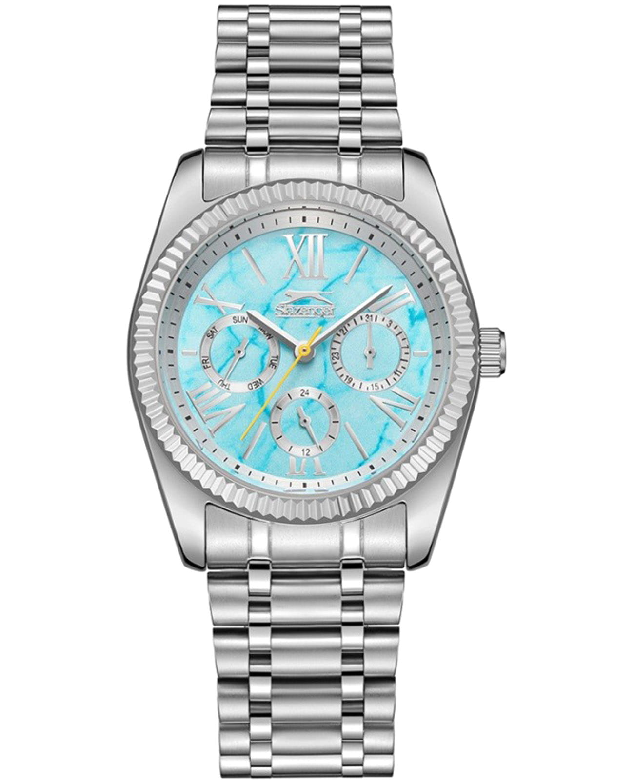 Женские кварцевые часы Slazenger SL.09.2343.4.01 – это сочетание элегантности, современного стиля и надёжности. Изящный корпус из суперметалла серебристого цвета, диаметром 36 мм и толщиной 10.5 мм, подчёркивает утончённость модели и делает их идеальным аксессуаром для любой ситуации – будь то деловая встреча, романтический вечер или повседневные выходы. Циферблат надёжно защищён минеральным стекломМинеральное стеклоМинеральное стекло представляет собой искусственно выращенный минерал кварца. Такое стекло отличается особой устойчивостью к повреждениям и царапинам. Уступает по некоторым качествам сапфировому стеклу., которое устойчиво к механическим повреждениям и сохраняет кристальную прозрачность. Рифленый неподвижный безельБезельВнешний ободок, закрепляющий стекло. В спортивных часах так называется поворотное кольцо с делениями на циферблате, выполняет роль таймера – замеряет отрезки времени на шкале. Неподвижный безель – элемент декора. Однонаправленно вращающийся безель на дайверских часах позволяет фиксировать моменты погружения и выныривания на поверхность.. Браслет из суперметалла удобно облегает запястье и фиксируется с помощью раскладной застёжкиРаскладная застёжкаТакой тип застёжки используется только на браслетах из металла. Она никогда не раскрывается полностью, происходит разделение на 2 и более частей. Раскладывающая застёжка снизит вероятность потери часов к минимуму., обеспечивая надёжность и комфорт в повседневном ношении. Утончённый стиль, внимание к деталям и практичность делают эту модель идеальным выбором для современных женщин, ценящих эстетику и функциональность. Вынесенный циферблат с 24-х часовым указателем времени. Водозащита до 30 метров позволит защитить корпус от случайных брызг или капель дождя.