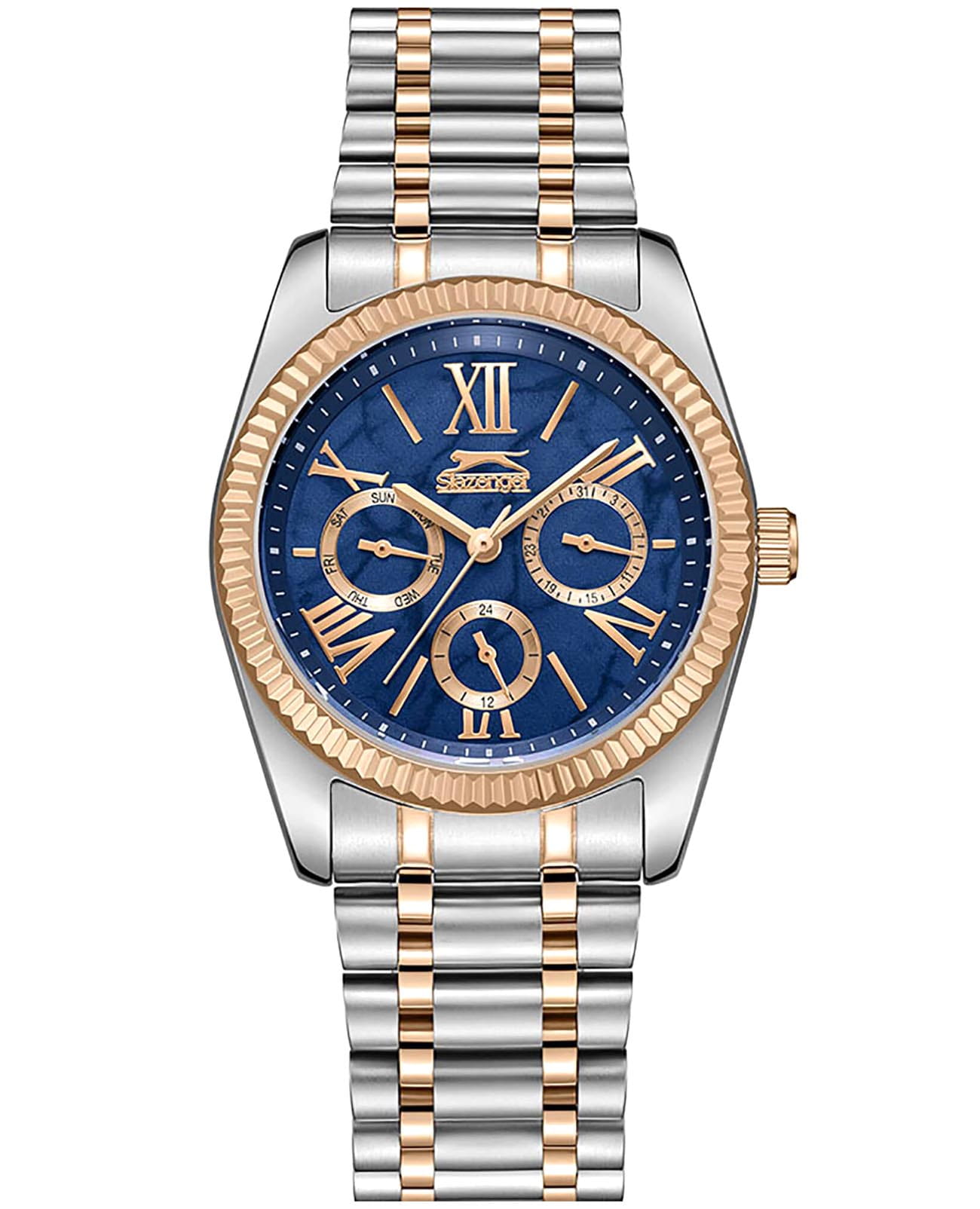 Женские кварцевые часы Slazenger SL.09.2343.4.05 – это сочетание элегантности, современного стиля и надёжности. Изящный корпус из суперметалла серебристого цвета, диаметром 36 мм и толщиной 10.5 мм, подчёркивает утончённость модели и делает их идеальным аксессуаром для любой ситуации – будь то деловая встреча, романтический вечер или повседневные выходы. Циферблат надёжно защищён минеральным стекломМинеральное стеклоМинеральное стекло представляет собой искусственно выращенный минерал кварца. Такое стекло отличается особой устойчивостью к повреждениям и царапинам. Уступает по некоторым качествам сапфировому стеклу., которое устойчиво к механическим повреждениям и сохраняет кристальную прозрачность. Рифленый неподвижный безельБезельВнешний ободок, закрепляющий стекло. В спортивных часах так называется поворотное кольцо с делениями на циферблате, выполняет роль таймера – замеряет отрезки времени на шкале. Неподвижный безель – элемент декора. Однонаправленно вращающийся безель на дайверских часах позволяет фиксировать моменты погружения и выныривания на поверхность. с IP-покрытиемIP-покрытиеМетод ионного напыления. Демонстрирует повышенную устойчивость к истиранию, окислению и химическим веществам. Под воздействием высокого давления и температуры около 1500°C молекулы металла надёжно соединяются с частицами корпуса часов. золотистого цвета. Браслет из суперметалла с частичным IP-покрытиемIP-покрытиеМетод ионного напыления. Демонстрирует повышенную устойчивость к истиранию, окислению и химическим веществам. Под воздействием высокого давления и температуры около 1500°C молекулы металла надёжно соединяются с частицами корпуса часов. удобно облегает запястье и фиксируется с помощью раскладной застёжкиРаскладная застёжкаТакой тип застёжки используется только на браслетах из металла. Она никогда не раскрывается полностью, происходит разделение на 2 и более частей. Раскладывающая застёжка снизит вероятность потери часов к минимуму., обеспечивая надёжность и комфорт в повседневном ношении. Утончённый стиль, внимание к деталям и практичность делают эту модель идеальным выбором для современных женщин, ценящих эстетику и функциональность. Вынесенный циферблат с 24-х часовым указателем времени. Водозащита до 30 метров позволит защитить корпус от случайных брызг или капель дождя.