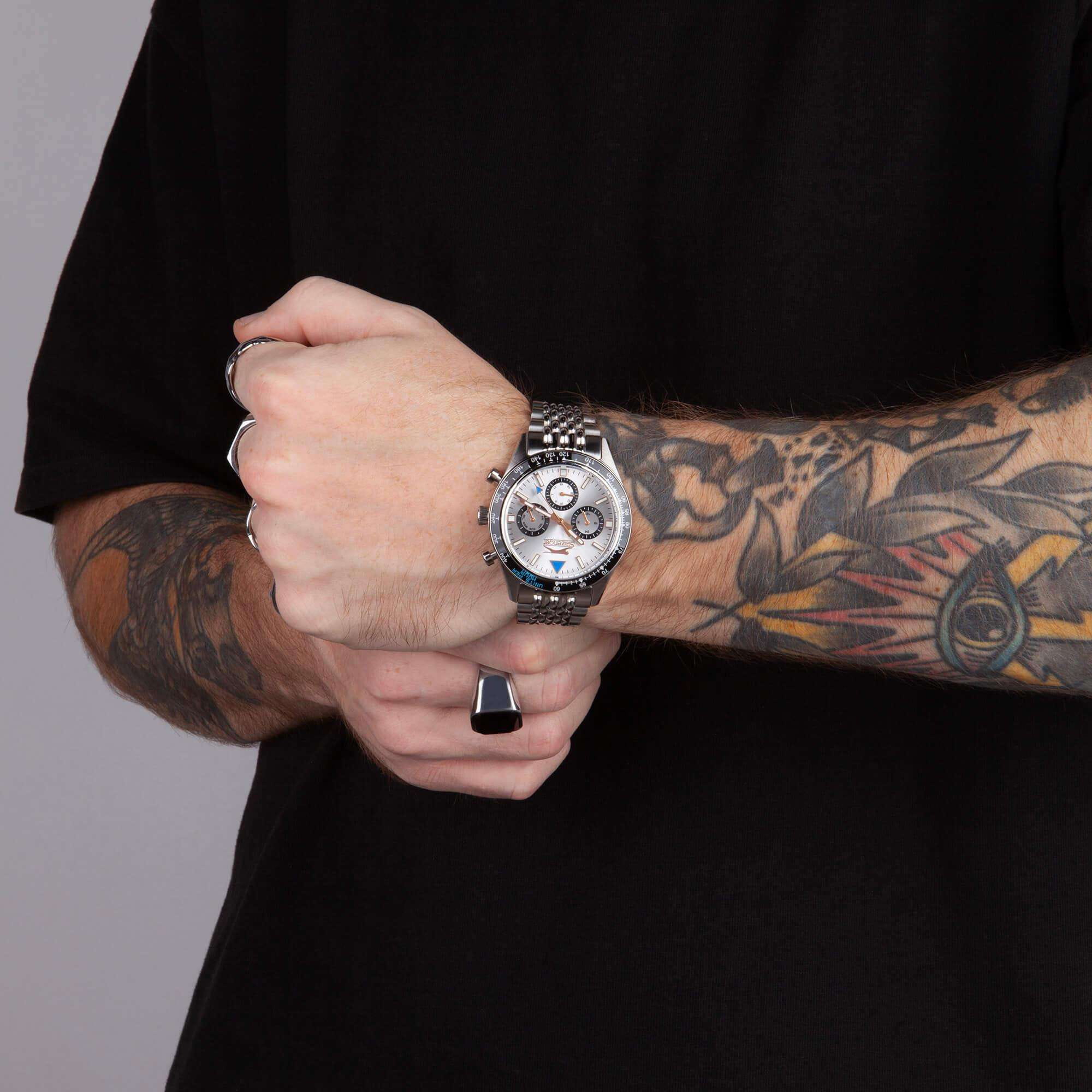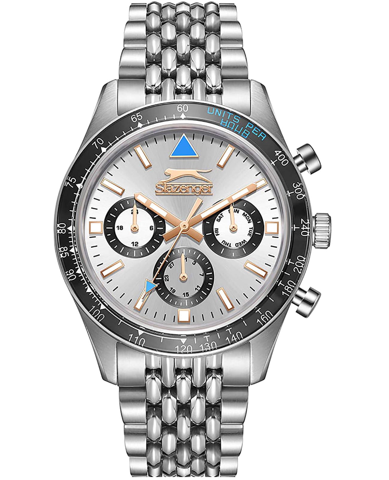 Мужские кварцевые часы Slazenger SL.09.2360.2.05 – идеальное сочетание классического дизайна и современных технологий, созданное для уверенных в себе мужчин. Корпус выполнен из суперметалла серебристого цвета, диаметром 43 мм и толщиной 12 мм, подчёркивает надежность модели и делает их идеальным аксессуаром для любой ситуации – будь то деловая встреча или повседневные выходы. Циферблат надёжно защищён минеральным стекломМинеральное стеклоМинеральное стекло представляет собой искусственно выращенный минерал кварца. Такое стекло отличается особой устойчивостью к повреждениям и царапинам. Уступает по некоторым качествам сапфировому стеклу., которое устойчиво к механическим повреждениям и сохраняет кристальную прозрачность. Неподвижный безельБезельВнешний ободок, закрепляющий стекло. В спортивных часах так называется поворотное кольцо с делениями на циферблате, выполняет роль таймера – замеряет отрезки времени на шкале. Неподвижный безель – элемент декора. Однонаправленно вращающийся безель на дайверских часах позволяет фиксировать моменты погружения и выныривания на поверхность. с IP-покрытиемIP-покрытиеМетод ионного напыления. Демонстрирует повышенную устойчивость к истиранию, окислению и химическим веществам. Под воздействием высокого давления и температуры около 1500°C молекулы металла надёжно соединяются с частицами корпуса часов. черного цвета. Стальной браслет на раскладной застёжкеРаскладная застёжкаТакой тип застёжки используется только на браслетах из металла. Она никогда не раскрывается полностью, происходит разделение на 2 и более частей. Раскладывающая застёжка снизит вероятность потери часов к минимуму. удобно облегает запястье, обеспечивая надёжность и комфорт в повседневном ношении. Стрелки и метки покрыты люминесцентным покрытиемЛюминесцентное покрытиеПозволяет считывать показания времени в темноте. Производители наносят на стрелки, часовые индексы, безель или поверхность циферблата светонакопительный состав, дающий холодное свечение., обеспечивающим отличную читаемость в темноте. Эти часы станут не просто аксессуаром, а надежным спутником в любой ситуации, подчеркивая ваш безупречный вкус и деловой стиль. Вынесенный циферблат с 24-х часовым указателем времени и функция тахиметраТахиметрРазмеченная шкала, располагается на ободке или безеле часов. Тахиметр позволяет рассчитать скорость на определённом участке пути, расстояние измеряется в километрах или милях.. Водозащита 50 метров позволит защитить корпус от случайных брызг или капель дождя.