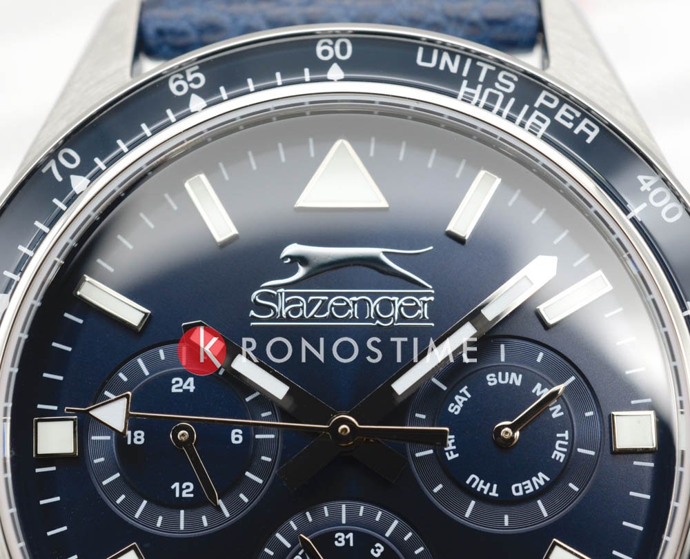 Slazenger SL.09.2361.2.03 — стильные мужские часы, сочетающие современный дизайн и функциональность. Корпус выполнен из нержавеющей стали, а безельБезельВнешний ободок, закрепляющий стекло. В спортивных часах так называется поворотное кольцо с делениями на циферблате, выполняет роль таймера – замеряет отрезки времени на шкале. Неподвижный безель – элемент декора. Однонаправленно вращающийся безель на дайверских часах позволяет фиксировать моменты погружения и выныривания на поверхность. покрыт PVDPVDУльтратонкое покрытие наносится в технике вакуумного напыления, сочетает в себе нитрид титана особой прочности со слоем золота или оксида хрома. Несёт в себе декоративную или защитную функцию.-покрытием синего цвета, придающим модели выразительный и элегантный вид. Минеральное стеклоМинеральное стеклоМинеральное стекло представляет собой искусственно выращенный минерал кварца. Такое стекло отличается особой устойчивостью к повреждениям и царапинам. Уступает по некоторым качествам сапфировому стеклу. защищает циферблат от царапин и гарантирует превосходную читаемость. Синий циферблат с контрастными метками и стрелками обеспечивает отличную читаемость в любых условиях. Кожаный ремешок придаёт модели классический стиль и комфорт при ношении. Функциональность дополняется индикацией даты, дня недели и 24-часовым форматом времени. Водонепроницаемость 50 метров делает модель устойчивой к случайным брызгам, идеально подходя для повседневного использования.