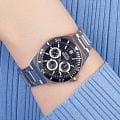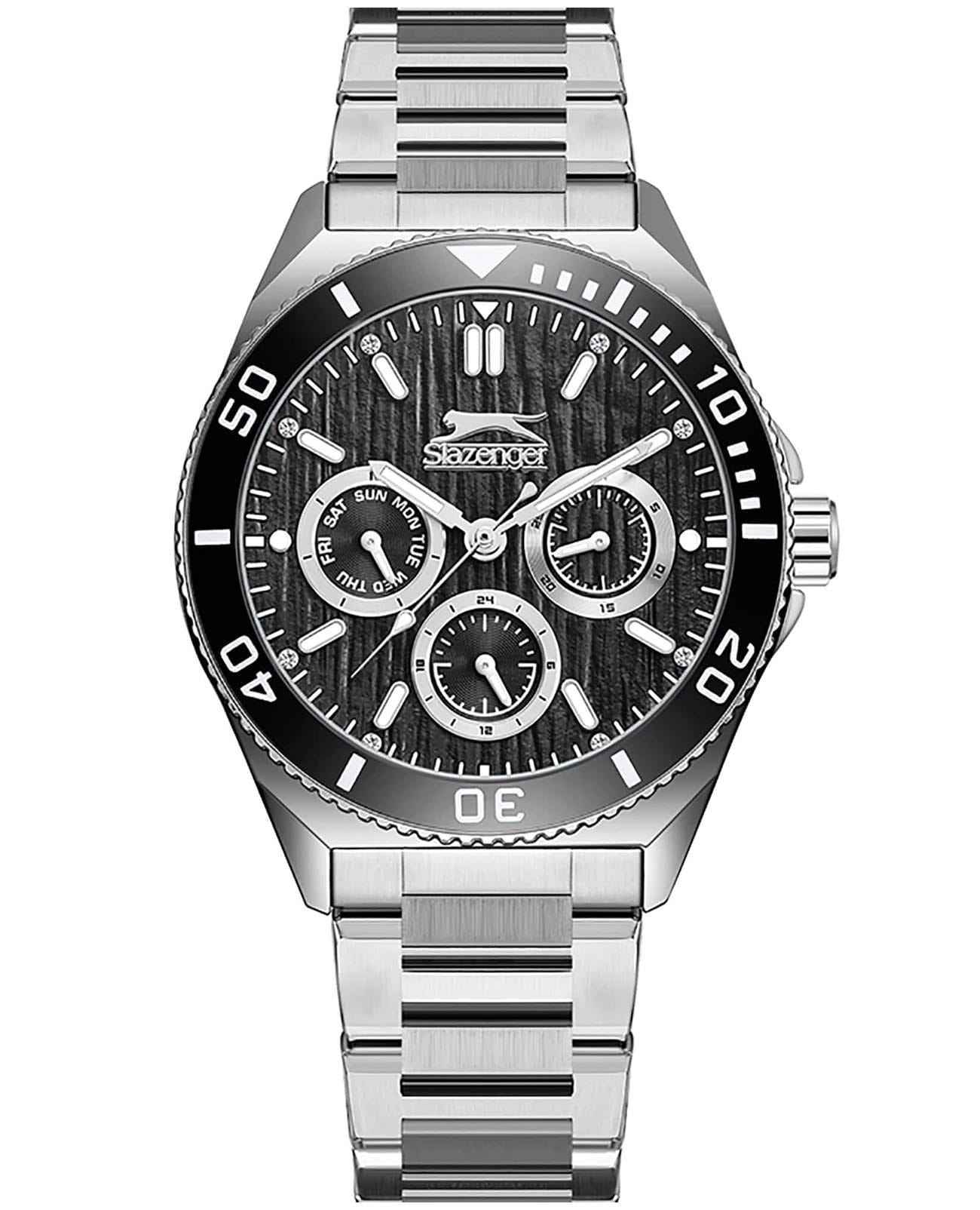 Женские кварцевые часы Slazenger SL.09.2371.2.01 – это сочетание элегантности, современного стиля и надёжности. Изящный корпус из суперметалла серебристого цвета, диаметром 38.5 мм и толщиной 11 мм, подчёркивает утончённость модели и делает их идеальным аксессуаром для любой ситуации – будь то деловая встреча, романтический вечер или повседневные выходы. Циферблат надёжно защищён минеральным стекломМинеральное стеклоМинеральное стекло представляет собой искусственно выращенный минерал кварца. Такое стекло отличается особой устойчивостью к повреждениям и царапинам. Уступает по некоторым качествам сапфировому стеклу., которое устойчиво к механическим повреждениям и сохраняет кристальную прозрачность. БезельБезельВнешний ободок, закрепляющий стекло. В спортивных часах так называется поворотное кольцо с делениями на циферблате, выполняет роль таймера – замеряет отрезки времени на шкале. Неподвижный безель – элемент декора. Однонаправленно вращающийся безель на дайверских часах позволяет фиксировать моменты погружения и выныривания на поверхность. с IP-покрытиемIP-покрытиеМетод ионного напыления. Демонстрирует повышенную устойчивость к истиранию, окислению и химическим веществам. Под воздействием высокого давления и температуры около 1500°C молекулы металла надёжно соединяются с частицами корпуса часов. черного цвета. Браслет из суперметалла удобно облегает запястье и фиксируется с помощью раскладной застёжкиРаскладная застёжкаТакой тип застёжки используется только на браслетах из металла. Она никогда не раскрывается полностью, происходит разделение на 2 и более частей. Раскладывающая застёжка снизит вероятность потери часов к минимуму., обеспечивая надёжность и комфорт в повседневном ношении. Утончённый стиль, внимание к деталям и практичность делают эту модель идеальным выбором для современных женщин, ценящих эстетику и функциональность. Стрелки и метки покрыты люминесцентным покрытиемЛюминесцентное покрытиеПозволяет считывать показания времени в темноте. Производители наносят на стрелки, часовые индексы, безель или поверхность циферблата светонакопительный состав, дающий холодное свечение., обеспечивающим отличную читаемость в темноте. Вынесенный циферблат с 24-х часовым указателем времени украшен фианитами. Водозащита до 30 метров позволит защитить корпус от случайных брызг или капель дождя.