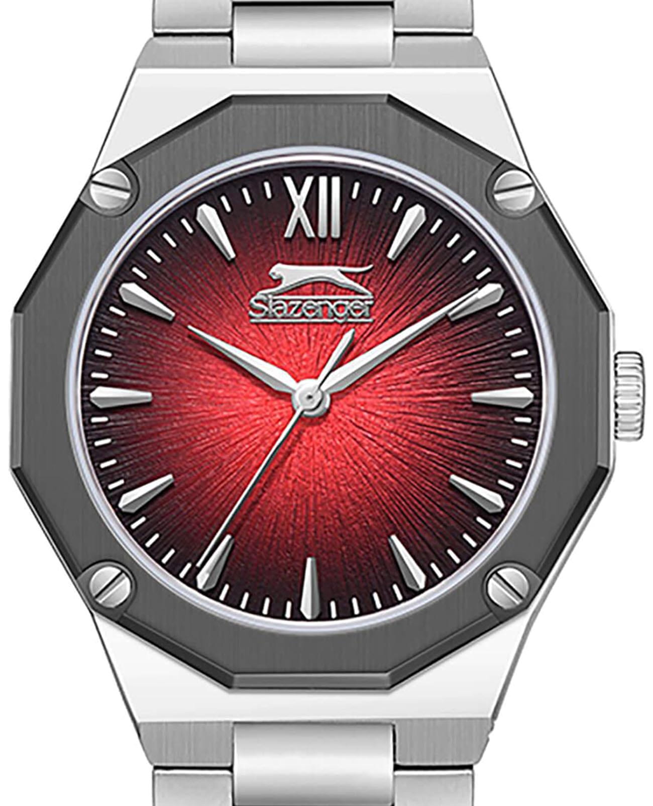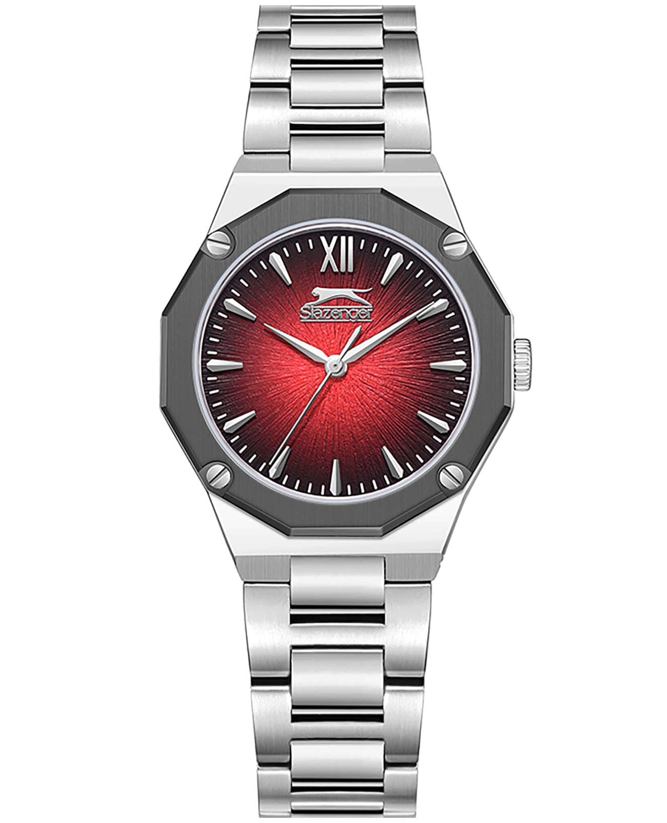 Женские кварцевые часы Slazenger SL.09.2374.3.06 – это сочетание элегантности, современного стиля и надёжности. Изящный корпус из суперметалла серебристого цвета, диаметром 30 мм и толщиной 7 мм, подчёркивает утончённость модели и делает их идеальным аксессуаром для любой ситуации – будь то деловая встреча, романтический вечер или повседневные выходы. Циферблат надёжно защищён минеральным стекломМинеральное стеклоМинеральное стекло представляет собой искусственно выращенный минерал кварца. Такое стекло отличается особой устойчивостью к повреждениям и царапинам. Уступает по некоторым качествам сапфировому стеклу., которое устойчиво к механическим повреждениям и сохраняет кристальную прозрачность. Неподвижный безельБезельВнешний ободок, закрепляющий стекло. В спортивных часах так называется поворотное кольцо с делениями на циферблате, выполняет роль таймера – замеряет отрезки времени на шкале. Неподвижный безель – элемент декора. Однонаправленно вращающийся безель на дайверских часах позволяет фиксировать моменты погружения и выныривания на поверхность. с IP-покрытиемIP-покрытиеМетод ионного напыления. Демонстрирует повышенную устойчивость к истиранию, окислению и химическим веществам. Под воздействием высокого давления и температуры около 1500°C молекулы металла надёжно соединяются с частицами корпуса часов.. Браслет из суперметалла удобно облегает запястье и фиксируется с помощью раскладной застёжкиРаскладная застёжкаТакой тип застёжки используется только на браслетах из металла. Она никогда не раскрывается полностью, происходит разделение на 2 и более частей. Раскладывающая застёжка снизит вероятность потери часов к минимуму., обеспечивая надёжность и комфорт в повседневном ношении. Утончённый стиль, внимание к деталям и практичность делают эту модель идеальным выбором для современных женщин, ценящих эстетику и функциональность. Водозащита до 30 метров позволит защитить корпус от случайных брызг или капель дождя.