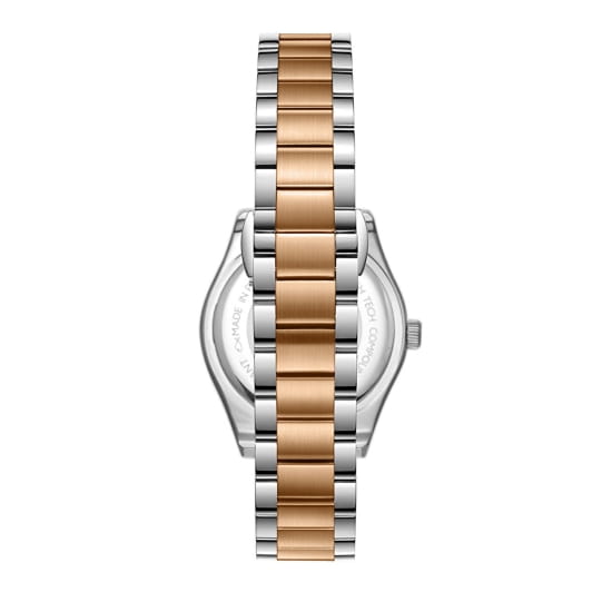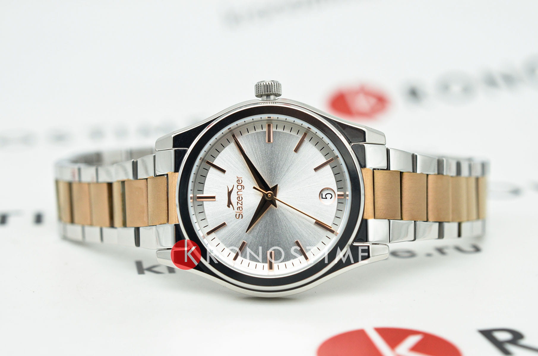 Женские кварцевые часы Slazenger — это элегантный аксессуар. Корпус диаметром 32 мм и толщиной 8 мм выполнен из суперметалла. Циферблат серебристого цвета оформлен индексами и стрелками. Циферблат защищён минеральным стекломМинеральное стеклоМинеральное стекло представляет собой искусственно выращенный минерал кварца. Такое стекло отличается особой устойчивостью к повреждениям и царапинам. Уступает по некоторым качествам сапфировому стеклу.. Механизм — кварцевый. Окошко даты расположено в положении 6 часов. Часы оснащены браслетом из суперметалла с IP-покрытиемIP-покрытиеМетод ионного напыления. Демонстрирует повышенную устойчивость к истиранию, окислению и химическим веществам. Под воздействием высокого давления и температуры около 1500°C молекулы металла надёжно соединяются с частицами корпуса часов. на застёжке «бабочка» с кнопкамиЗастёжка "бабочка"Такой вид застёжки дополняется предохранителями, помогающими избежать случайного раскрытия браслета. Обладают изящным исполнением. . Водонепроницаемость 50 м позволяет использовать часы в повседневных условиях. Гарантия — 12 месяцев. Идеальный выбор для тех, кто ценит стиль и качество.