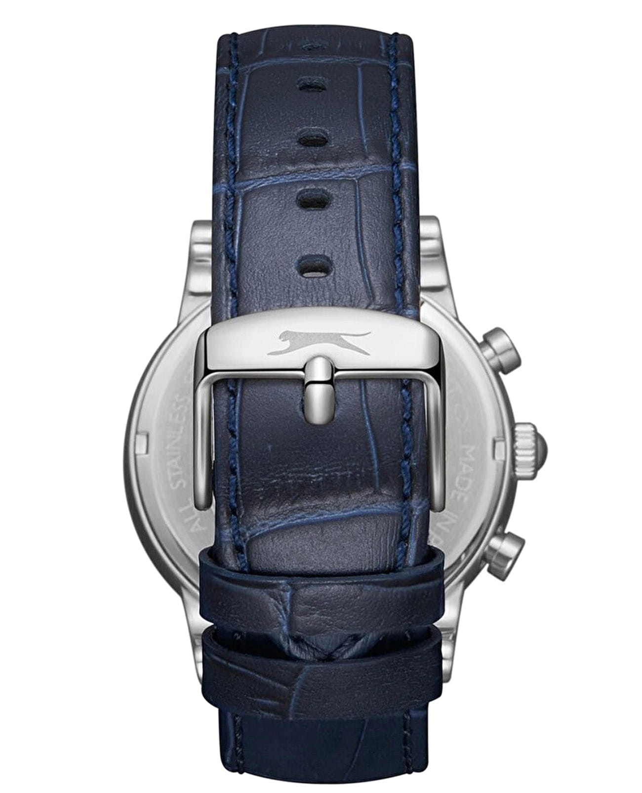 Мужские кварцевые часы Slazenger — это выразительный и функциональный аксессуар. Корпус диаметром 43 мм и толщиной 12 мм выполнен из нержавеющей стали 316L. Циферблат синего цвета оформлен индексами и стрелками. Циферблат защищён минеральным стекломМинеральное стеклоМинеральное стекло представляет собой искусственно выращенный минерал кварца. Такое стекло отличается особой устойчивостью к повреждениям и царапинам. Уступает по некоторым качествам сапфировому стеклу.. Стрелки с люминесцентным покрытиемЛюминесцентное покрытиеПозволяет считывать показания времени в темноте. Производители наносят на стрелки, часовые индексы, безель или поверхность циферблата светонакопительный состав, дающий холодное свечение., обеспечивающим хорошую читаемость в темноте. Механизм — кварцевый. Часы оснащены индикацией дня недели, даты, 12/24-часового формата времени и функцией второго часового пояса (GMT)Второй часовой поясФункция, позволяющая отображать время двух часовых поясов одновременно.. Окошко даты расположено между 4 и 5 часами. Часы оснащены кожаным ремешком с стандартной застёжкой. Водонепроницаемость 100 м позволяет использовать часы для плавания и повседневного ношения. Гарантия — 12 месяцев. Идеальный выбор для тех, кто ценит стиль, функциональность и качество.