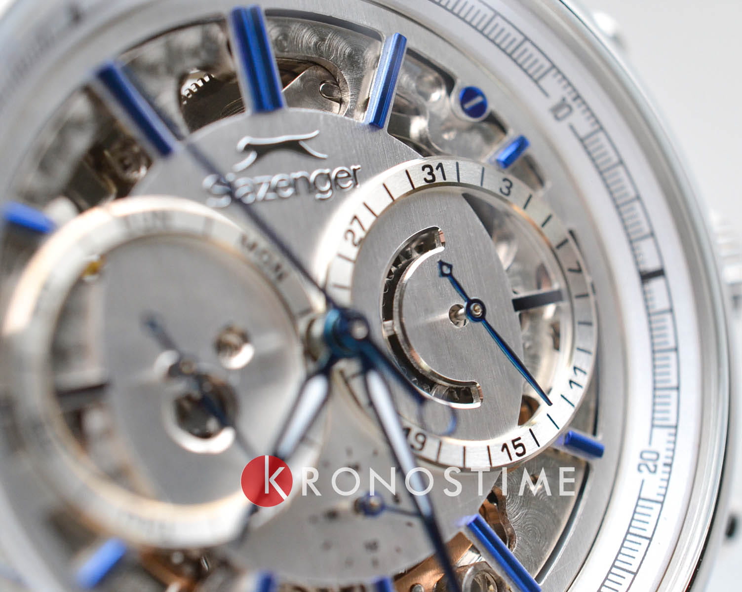 Мужские механические часы с автоподзаводом Slazenger — это выразительный и функциональный аксессуар. Корпус диаметром 41 мм и толщиной 16 мм выполнен из нержавеющей стали 316L. Циферблат серебристого цвета частично скелетонизирован, что позволяет наблюдать за работой механизма. Циферблат защищён минеральным стекломМинеральное стеклоМинеральное стекло представляет собой искусственно выращенный минерал кварца. Такое стекло отличается особой устойчивостью к повреждениям и царапинам. Уступает по некоторым качествам сапфировому стеклу.. Механизм — автоматический. Часы оснащены индикацией дня недели, даты и 12/24-часового формата времени. Прозрачная задняя крышка открывает вид на декорированный механизм. Часы оснащены кожаным ремешком с застёжкой «бабочка» с кнопкамиЗастёжка "бабочка"Такой вид застёжки дополняется предохранителями, помогающими избежать случайного раскрытия браслета. Обладают изящным исполнением. . Водонепроницаемость 100 м позволяет использовать часы для плавания и повседневного ношения. Гарантия — 12 месяцев. Идеальный выбор для тех, кто ценит стиль, функциональность и качество.