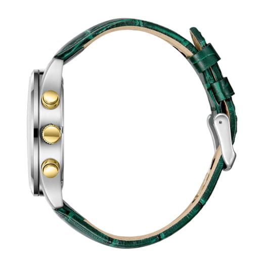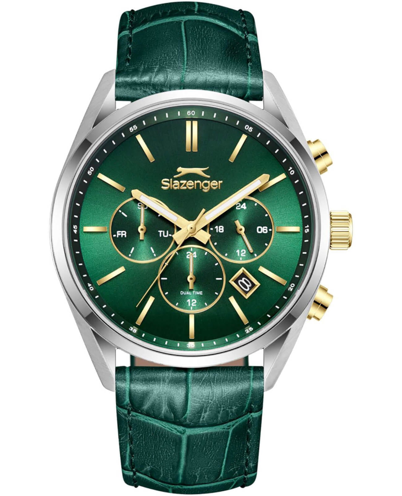 Мужские кварцевые часы Slazenger — это выразительный и функциональный аксессуар. Корпус диаметром 42 мм и толщиной 12 мм выполнен из нержавеющей стали 316L. Циферблат зелёного цвета оформлен индексами и стрелками. Циферблат защищён минеральным стекломМинеральное стеклоМинеральное стекло представляет собой искусственно выращенный минерал кварца. Такое стекло отличается особой устойчивостью к повреждениям и царапинам. Уступает по некоторым качествам сапфировому стеклу.. Механизм — кварцевый. Часы оснащены индикацией дня недели, даты, 12/24-часового формата времени и функцией второго часового пояса (GMT)Второй часовой поясФункция, позволяющая отображать время двух часовых поясов одновременно.. Окошко даты расположено между 4 и 5 часами. Стрелки и метки с люминесцентным покрытиемЛюминесцентное покрытиеПозволяет считывать показания времени в темноте. Производители наносят на стрелки, часовые индексы, безель или поверхность циферблата светонакопительный состав, дающий холодное свечение., обеспечивающим хорошую читаемость в темноте. Часы оснащены кожаным ремешком с стандартной застёжкой. Водонепроницаемость 100 м позволяет использовать часы для плавания и повседневного ношения. Гарантия — 12 месяцев. Идеальный выбор для тех, кто ценит стиль, функциональность и качество.