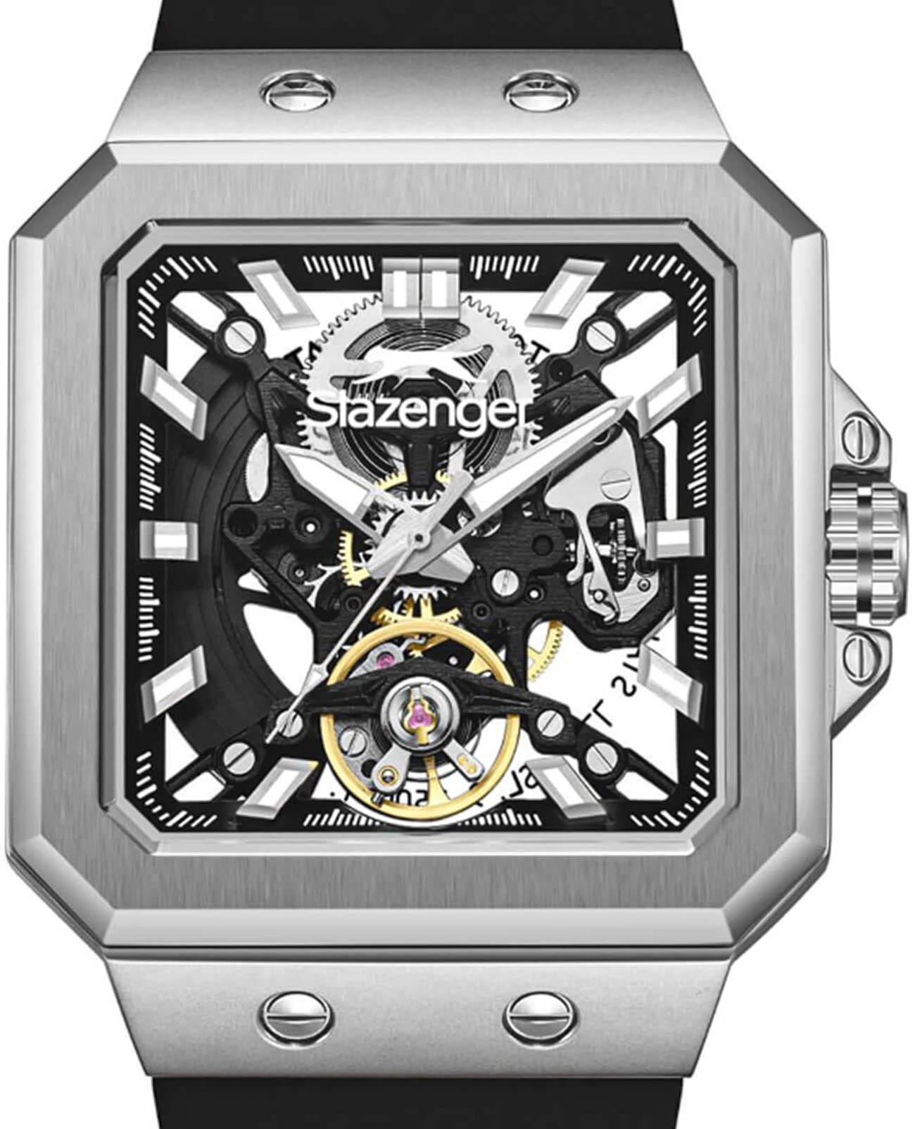 Мужские механические часы с автоподзаводом Slazenger — это выразительный и функциональный аксессуар. Корпус размером 40×51 мм и толщиной 14 мм выполнен из нержавеющей стали 316L. Циферблат чёрного цвета скелетонизирован, что позволяет наблюдать за работой механизма. Циферблат защищён минеральным стекломМинеральное стеклоМинеральное стекло представляет собой искусственно выращенный минерал кварца. Такое стекло отличается особой устойчивостью к повреждениям и царапинам. Уступает по некоторым качествам сапфировому стеклу.. Стрелки и метки с люминесцентным покрытиемЛюминесцентное покрытиеПозволяет считывать показания времени в темноте. Производители наносят на стрелки, часовые индексы, безель или поверхность циферблата светонакопительный состав, дающий холодное свечение., обеспечивающим хорошую читаемость в темноте. Часы оснащены силиконовым ремешком с стандартной застёжкой. Водонепроницаемость 100 м позволяет использовать часы для плавания и повседневного ношения. Гарантия — 12 месяцев. Идеальный выбор для тех, кто ценит стиль, технологичность и качество.