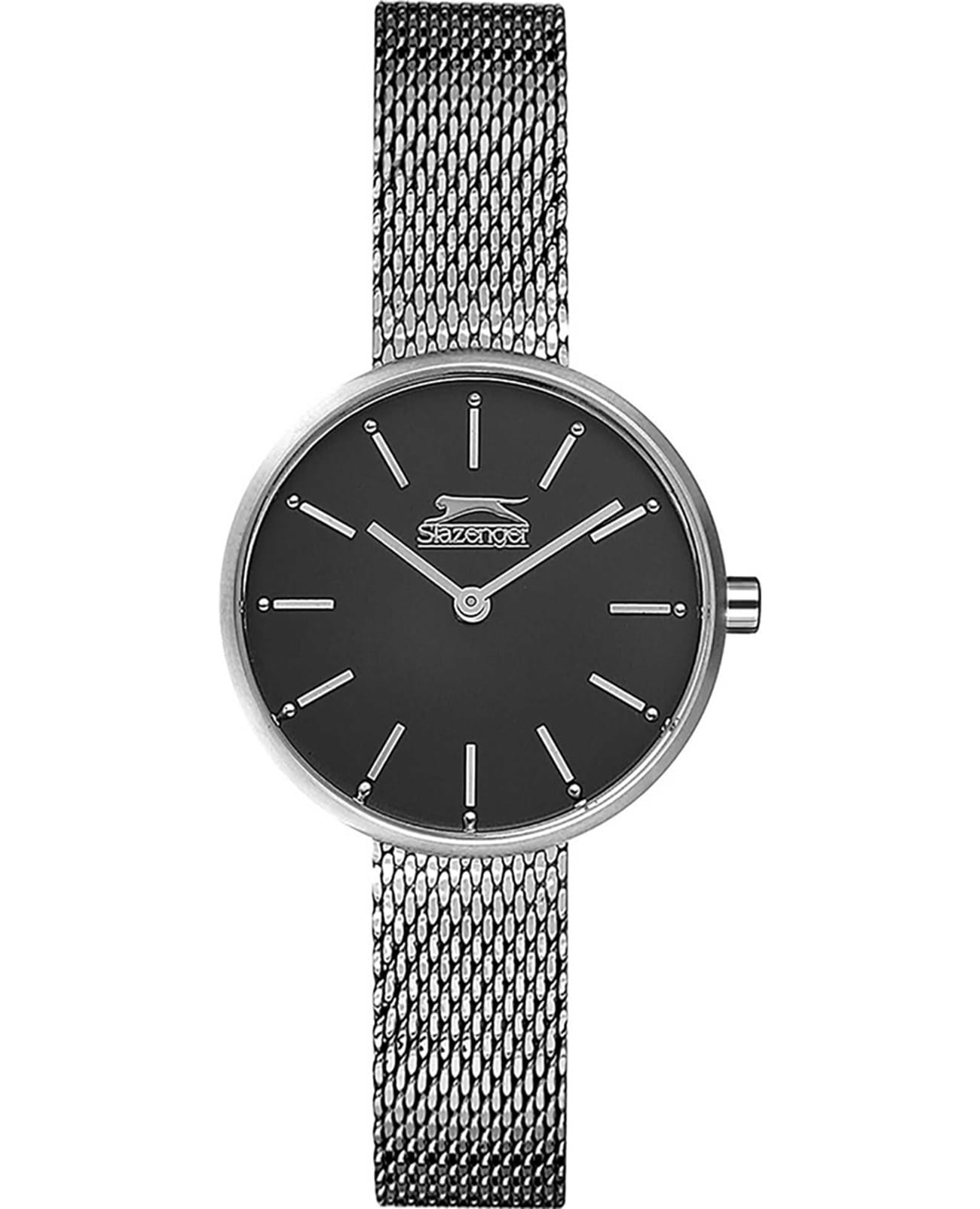 Женские кварцевые часы Slazenger — стильный аксессуар с тонким корпусом и изящным браслетом миланского плетения, идеально сочетающий элегантность и современный дизайн. Корпус диаметром 30 мм и толщиной 8 мм выполнен из суперметалла. Циферблат чёрного цвета оформлен индексами и стрелками. Циферблат защищён минеральным стекломМинеральное стеклоМинеральное стекло представляет собой искусственно выращенный минерал кварца. Такое стекло отличается особой устойчивостью к повреждениям и царапинам. Уступает по некоторым качествам сапфировому стеклу.. Механизм — кварцевый. Часы оснащены браслетом из суперметалла миланского плетения с раскладной застёжкойРаскладная застёжкаТакой тип застёжки используется только на браслетах из металла. Она никогда не раскрывается полностью, происходит разделение на 2 и более частей. Раскладывающая застёжка снизит вероятность потери часов к минимуму.. Водонепроницаемость 30 м позволяет использовать часы в повседневных условиях. Надёжный выбор для тех, кто ценит лаконичность, качество и утончённый стиль.