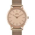 Женские кварцевые часы Slazenger — это элегантный аксессуар с браслетом миланского плетения. Корпус диаметром 34,5 мм выполнен из суперметалла с IP-покрытиемIP-покрытиеМетод ионного напыления. Демонстрирует повышенную устойчивость к истиранию, окислению и химическим веществам. Под воздействием высокого давления и температуры около 1500°C молекулы металла надёжно соединяются с частицами корпуса часов.. Циферблат бежевого цвета оформлен индексами и стрелками. Стрелки с люминесцентным покрытиемЛюминесцентное покрытиеПозволяет считывать показания времени в темноте. Производители наносят на стрелки, часовые индексы, безель или поверхность циферблата светонакопительный состав, дающий холодное свечение., обеспечивающим читаемость в темноте. Циферблат защищён минеральным стекломМинеральное стеклоМинеральное стекло представляет собой искусственно выращенный минерал кварца. Такое стекло отличается особой устойчивостью к повреждениям и царапинам. Уступает по некоторым качествам сапфировому стеклу.. Механизм — кварцевый калибр Y120. Часы оснащены браслетом из суперметалла на раскладной застёжкеРаскладная застёжкаТакой тип застёжки используется только на браслетах из металла. Она никогда не раскрывается полностью, происходит разделение на 2 и более частей. Раскладывающая застёжка снизит вероятность потери часов к минимуму.. Водонепроницаемость 50 м позволяет использовать часы для плавания и повседневного ношения. Идеальный выбор для тех, кто ценит стиль и качество.