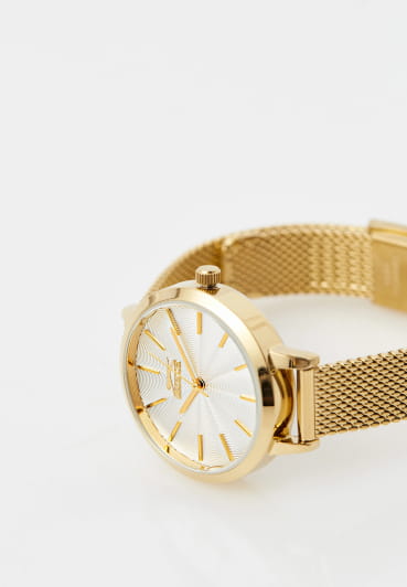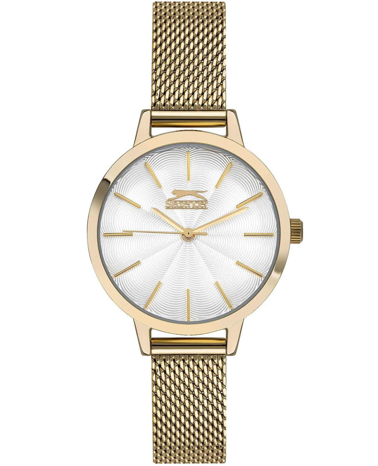 Женские кварцевые часы Slazenger — это элегантный аксессуар. Корпус диаметром 32 мм и толщиной 8 мм выполнен из суперметалла с IP-покрытиемIP-покрытиеМетод ионного напыления. Демонстрирует повышенную устойчивость к истиранию, окислению и химическим веществам. Под воздействием высокого давления и температуры около 1500°C молекулы металла надёжно соединяются с частицами корпуса часов.. Циферблат серебристого цвета оформлен индексами и стрелками. Циферблат защищён минеральным стекломМинеральное стеклоМинеральное стекло представляет собой искусственно выращенный минерал кварца. Такое стекло отличается особой устойчивостью к повреждениям и царапинам. Уступает по некоторым качествам сапфировому стеклу.. Часы оснащены браслетом миланского плетения из суперметалла на раскладном замкеРаскладная застёжкаТакой тип застёжки используется только на браслетах из металла. Она никогда не раскрывается полностью, происходит разделение на 2 и более частей. Раскладывающая застёжка снизит вероятность потери часов к минимуму.. Водонепроницаемость 30 м позволяет использовать часы в повседневных условиях. Идеальный выбор для тех, кто ценит стиль и качество.
