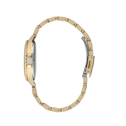 Женские кварцевые часы Slazenger SL.09.6536.3.02 – это сочетание элегантности, современного стиля и надёжности. Изящный корпус из суперметалла с IP-покрытиемIP-покрытиеМетод ионного напыления. Демонстрирует повышенную устойчивость к истиранию, окислению и химическим веществам. Под воздействием высокого давления и температуры около 1500°C молекулы металла надёжно соединяются с частицами корпуса часов. золотистого цвета, диаметром 35 мм и толщиной 8.5 мм, подчёркивает утончённость модели и делает их идеальным аксессуаром для любой ситуации – будь то деловая встреча, романтический вечер или повседневные выходы. Циферблат надёжно защищён минеральным стекломМинеральное стеклоМинеральное стекло представляет собой искусственно выращенный минерал кварца. Такое стекло отличается особой устойчивостью к повреждениям и царапинам. Уступает по некоторым качествам сапфировому стеклу., которое устойчиво к механическим повреждениям и сохраняет кристальную прозрачность. БезельБезельВнешний ободок, закрепляющий стекло. В спортивных часах так называется поворотное кольцо с делениями на циферблате, выполняет роль таймера – замеряет отрезки времени на шкале. Неподвижный безель – элемент декора. Однонаправленно вращающийся безель на дайверских часах позволяет фиксировать моменты погружения и выныривания на поверхность. украшен фианитами. Браслет из суперметалла с IP-покрытиемIP-покрытиеМетод ионного напыления. Демонстрирует повышенную устойчивость к истиранию, окислению и химическим веществам. Под воздействием высокого давления и температуры около 1500°C молекулы металла надёжно соединяются с частицами корпуса часов. удобно облегает запястье и фиксируется с помощью раскладной застёжкиРаскладная застёжкаТакой тип застёжки используется только на браслетах из металла. Она никогда не раскрывается полностью, происходит разделение на 2 и более частей. Раскладывающая застёжка снизит вероятность потери часов к минимуму., обеспечивая надёжность и комфорт в повседневном ношении. Стрелки покрыты люминесцентным покрытиемЛюминесцентное покрытиеПозволяет считывать показания времени в темноте. Производители наносят на стрелки, часовые индексы, безель или поверхность циферблата светонакопительный состав, дающий холодное свечение., обеспечивающим отличную читаемость в темноте. Утончённый стиль, внимание к деталям и практичность делают эту модель идеальным выбором для современных женщин, ценящих эстетику и функциональность. Водозащита до 30 метров позволит защитить корпус от случайных брызг или капель дождя.