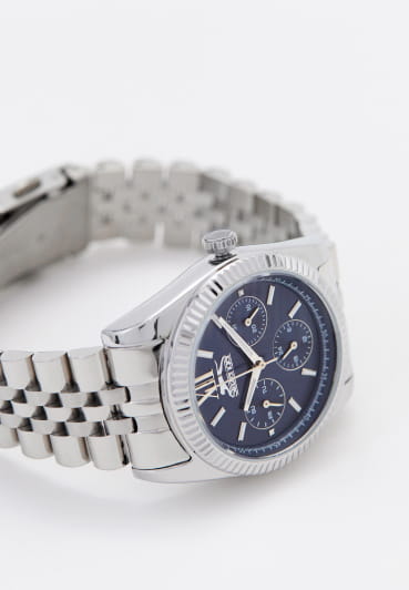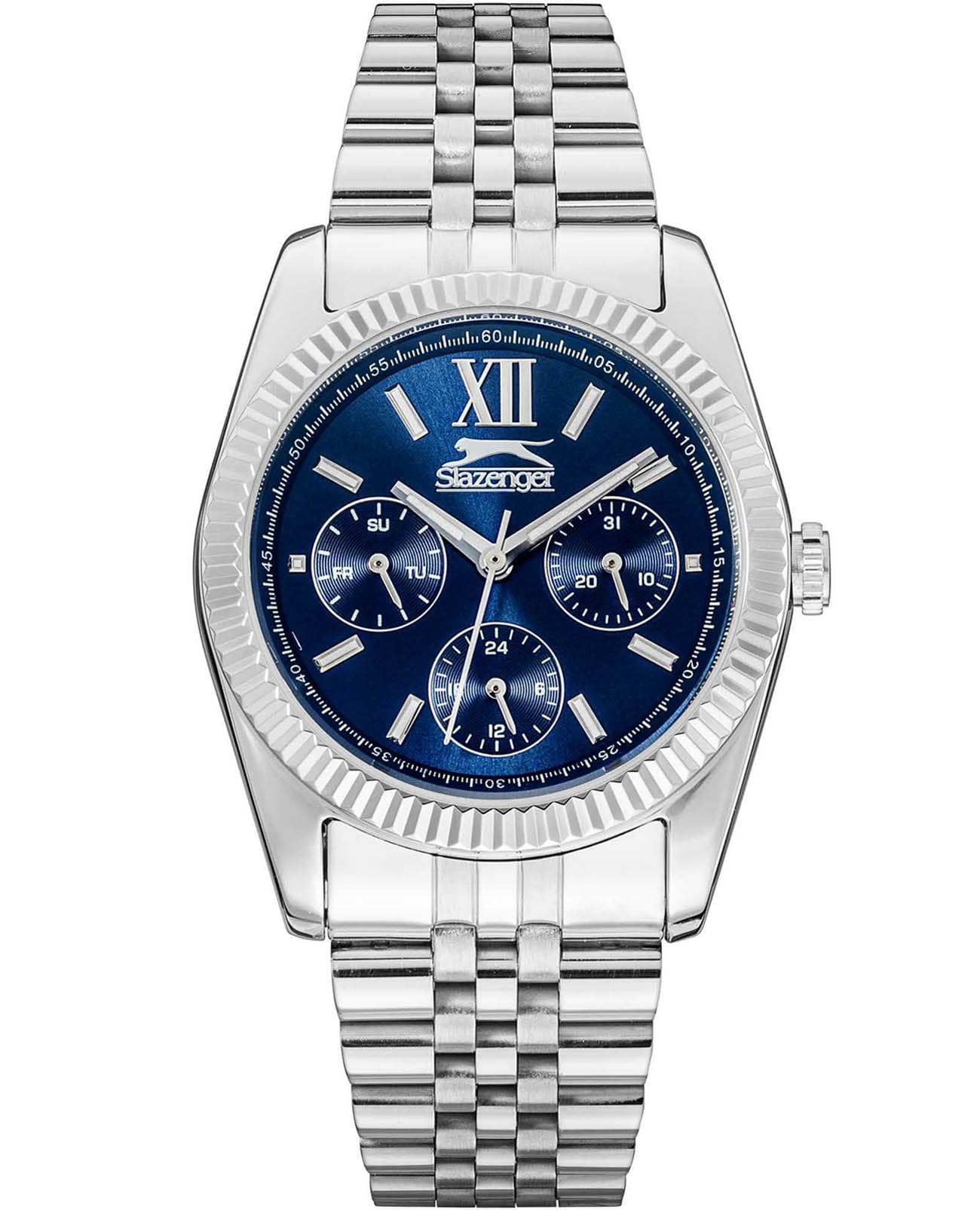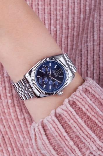 Женские элегантные наручные часы Slazenger SL.09.6556.4.01 сочетают в себе современный стиль и функциональность. Стильный корпус выполнен из суперметалла, придающий модели дополнительную прочность и элегантный внешний вид. Изысканный циферблат защищён минеральным стекломМинеральное стеклоМинеральное стекло представляет собой искусственно выращенный минерал кварца. Такое стекло отличается особой устойчивостью к повреждениям и царапинам. Уступает по некоторым качествам сапфировому стеклу., устойчивым к царапинам и повреждениям. Водонепроницаемость 5 АТМ позволяет использовать часы в повседневных условиях — при мытье рук или под лёгким дождём. Браслет из суперметалла и с раскладной застёжкойРаскладная застёжкаТакой тип застёжки используется только на браслетах из металла. Она никогда не раскрывается полностью, происходит разделение на 2 и более частей. Раскладывающая застёжка снизит вероятность потери часов к минимуму., обеспечивающий надёжную фиксацию и комфорт при ношении. На отдельные циферблаты вынесены указатели 24-часового времени, даты и дня недели, что делает использование часов особенно удобным в повседневной жизни. Cтрелки и метки покрыты люминесцентным покрытиемЛюминесцентное покрытиеПозволяет считывать показания времени в темноте. Производители наносят на стрелки, часовые индексы, безель или поверхность циферблата светонакопительный состав, дающий холодное свечение. для читаемости в условиях недостаточного освещения. Эта модель идеально подходит для женщин, ценящих стиль, функциональность и надёжность в одном аксессуаре.