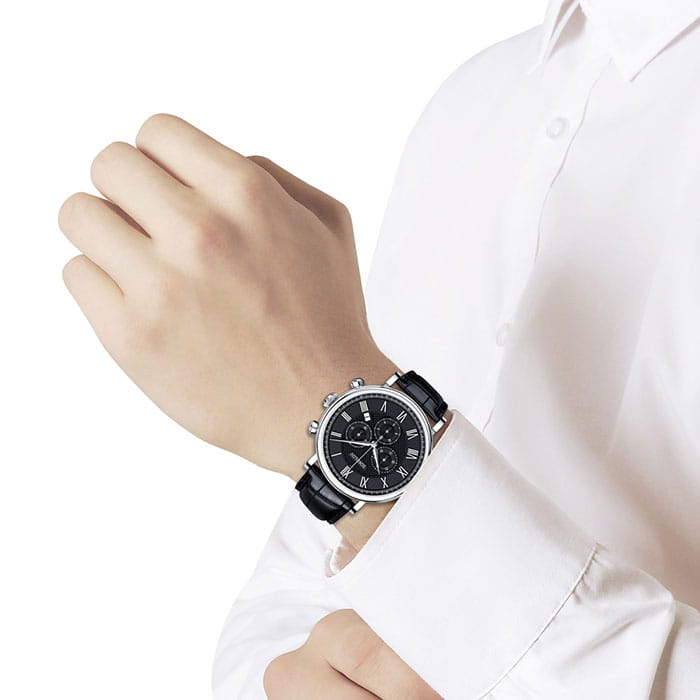Мужские серебряные часы с хронографом Sokolov 125.30.00.000.02.01.3, кварцевый механизм с высокой точностью. Корпус часов изготовлен из серебра, цвета.