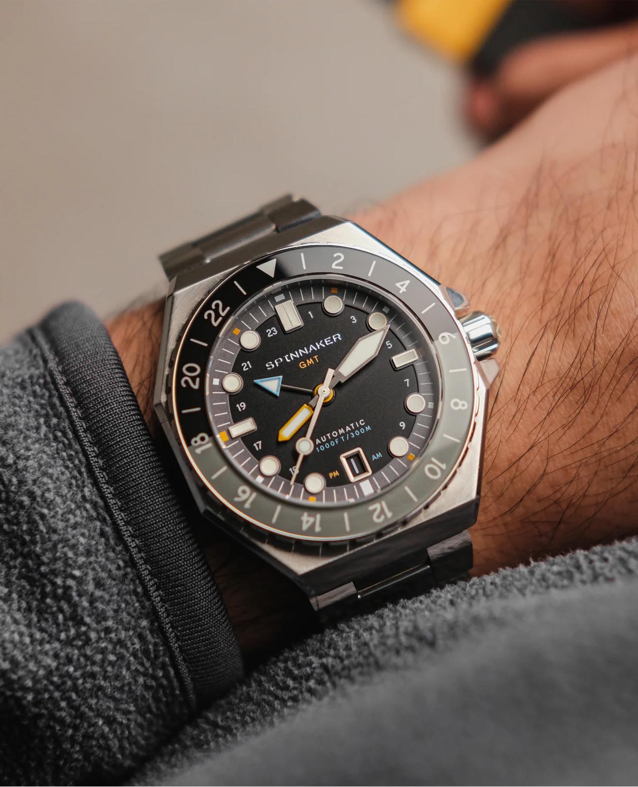 Мужские итальянские механические часы с автоподзаводом Spinnaker Dumas GMTGMTОтображение времени второго часового пояса.Такая функция особенно актуальна для путешественников и бизнесменов,которые общаются с людьми из разных стран,теперь вы всегда будете знать,какой час у вашего партнёра или близкого человека. SP-5119-11, механический механизм (автоматический калибр) с высокой точностью. Циферблат с люминесцентным покрытиемЛюминесцентное покрытиеПозволяет считывать показания времени в темноте. Производители наносят на стрелки, часовые индексы, безель или поверхность циферблата светонакопительный состав, дающий холодное свечение. стрелок, меток и безеляБезельВнешний ободок, закрепляющий стекло. В спортивных часах так называется поворотное кольцо с делениями на циферблате, выполняет роль таймера – замеряет отрезки времени на шкале. Неподвижный безель – элемент декора. Однонаправленно вращающийся безель на дайверских часах позволяет фиксировать моменты погружения и выныривания на поверхность. дополнен сапфировым стекломСапфировое стеклоПрочный и надёжный материал из кристалла сапфира синтетического происхождения, характеризующийся особой твёрдостью и устойчивостью к царапинам и повреждениям. с антибликовым покрытием, устойчивым к появлению царапин и обладающее высокой прозрачностью. Класс водозащиты: 300 метров (погружение с аквалангом). Корпус часов изготовлен из нержавеющей стали 316L. Вращающийся безельБезельВнешний ободок, закрепляющий стекло. В спортивных часах так называется поворотное кольцо с делениями на циферблате, выполняет роль таймера – замеряет отрезки времени на шкале. Неподвижный безель – элемент декора. Однонаправленно вращающийся безель на дайверских часах позволяет фиксировать моменты погружения и выныривания на поверхность. с IP-покрытиемIP-покрытиеМетод ионного напыления. Демонстрирует повышенную устойчивость к истиранию, окислению и химическим веществам. Под воздействием высокого давления и температуры около 1500°C молекулы металла надёжно соединяются с частицами корпуса часов.. Стальной браслет на раскладной застёжкеРаскладная застёжкаТакой тип застёжки используется только на браслетах из металла. Она никогда не раскрывается полностью, происходит разделение на 2 и более частей. Раскладывающая застёжка снизит вероятность потери часов к минимуму.. В комплект входит сменный силиконовый ремешок.