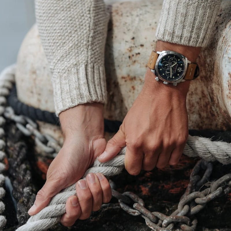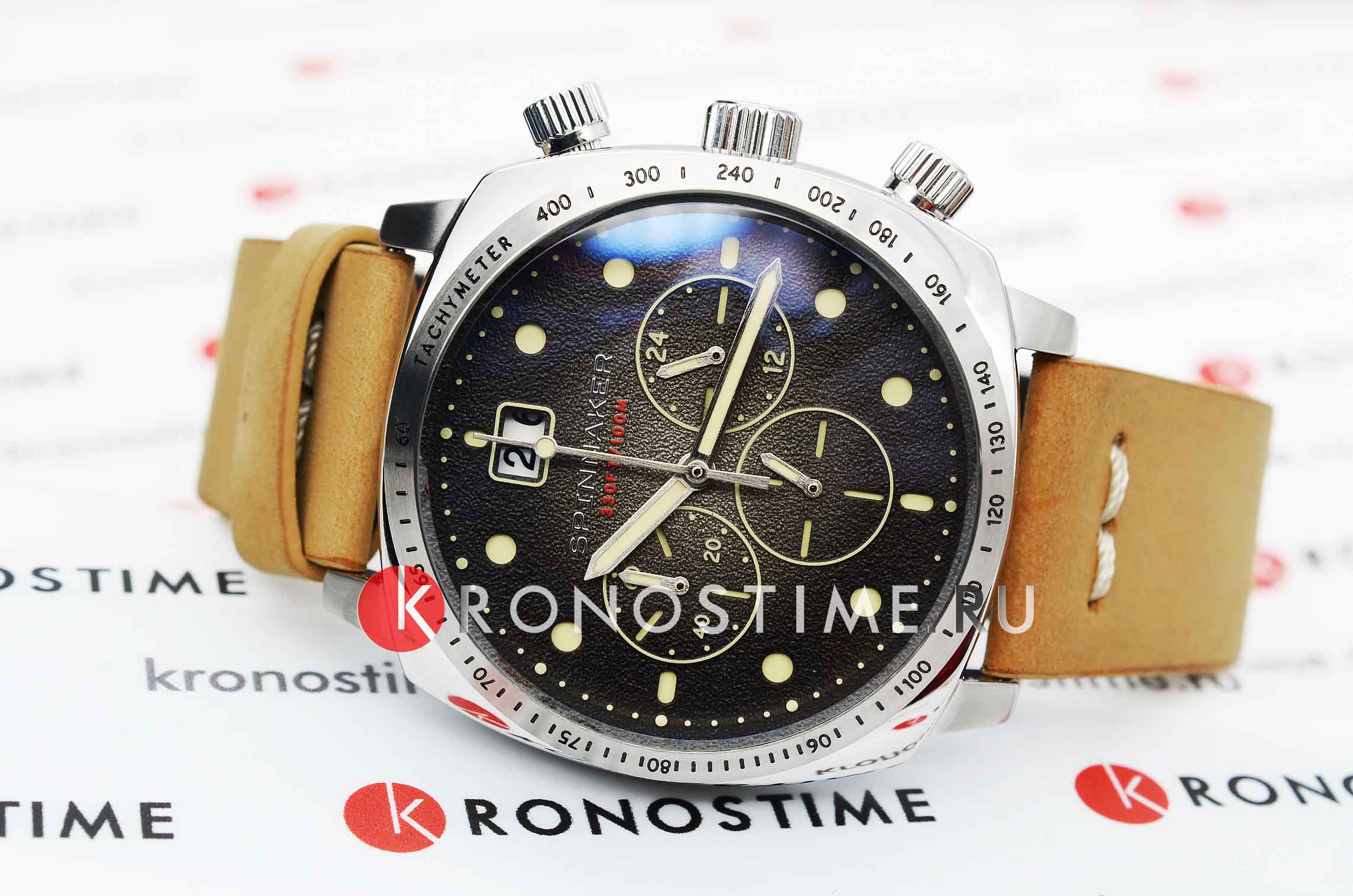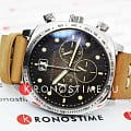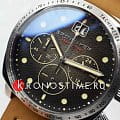 Мужской кварцевый хронографХронографФункция позволяет измерять отрезки времени с особой точностью: часы, минуты, секунды. Верным признаком хронографа является наличие на циферблате 3 дополнительных окошек-счётчиков. с секундомеромСекундомерСекундоме́р — прибор, способный измерять интервалы времени с точностью до долей секунды. и тахиметромТахиметрРазмеченная шкала, располагается на ободке или безеле часов. Тахиметр позволяет рассчитать скорость на определённом участке пути, расстояние измеряется в километрах или милях.. Калибр механизма TMI VK73. Центральные часовая и минутная стрелки, секундная стрелка вынесена на малый циферблат. Большая дата в позиции 12 часов. 12/24х часовой формат времени. Корпус выполнен из нержавеющей стали. Коричневый кожаный ремешок шириной 22 мм, стандартная застежка. Циферблат с люминесцентным покрытиемЛюминесцентное покрытиеПозволяет считывать показания времени в темноте. Производители наносят на стрелки, часовые индексы, безель или поверхность циферблата светонакопительный состав, дающий холодное свечение. стрелок и меток, дополнен выпуклым минеральным стекломМинеральное стеклоМинеральное стекло представляет собой искусственно выращенный минерал кварца. Такое стекло отличается особой устойчивостью к повреждениям и царапинам. Уступает по некоторым качествам сапфировому стеклу. , устойчивым к мелким механическим повреждениям. Водостойкость WR 100 (плавание без погружения).