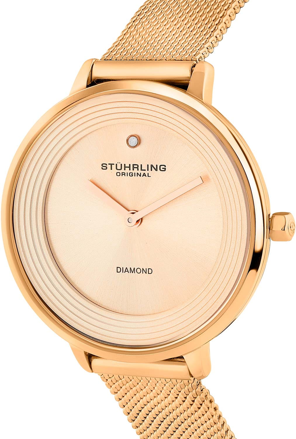Stuhrling 3946.5 — элегантные женские часы, объединяющие строгую классику и современную функциональность. Корпус из нержавеющей стали с PVD-покрытиемPVDУльтратонкое покрытие наносится в технике вакуумного напыления, сочетает в себе нитрид титана особой прочности со слоем золота или оксида хрома. Несёт в себе декоративную или защитную функцию. создают ощущение монолитной надёжности, а глубокий циферблат украшенный кристаллом придаёт модели выразительность и характер. Стальной браслет миланского плетения с PVD-покрытиемPVDУльтратонкое покрытие наносится в технике вакуумного напыления, сочетает в себе нитрид титана особой прочности со слоем золота или оксида хрома. Несёт в себе декоративную или защитную функцию. на раскладном замкеРаскладной замокДанный вариант застежки используется только на часах с металлическим браслетом. Отличительная особенность такого крепления в том, что длина браслета становится универсальной и вы можете самостоятельно отрегулировать нужный вам размер – застежка просто двигается по браслету часов.. Прочное стекло KrysternaKrysternaKrysterna — инновационное стекло для наручных часов. Благодаря уникальной структуре, Krysterna объединяет ключевые преимущества двух материалов: твердость сапфира, защищающую от царапин, и гибкость минерального стекла, обеспечивающую устойчивость к деформациям. Такая комбинация делает его идеальным решением для часов, подверженных экстремальным нагрузкам, сохраняя при этом оптическую прозрачность. защищает циферблат от царапин, а надёжный кварцевый механизм гарантирует стабильную точность. Stuhrling — выбор уверенной девушки, ценящей сочетание функциональности, лаконичного дизайна и безупречной отделки.