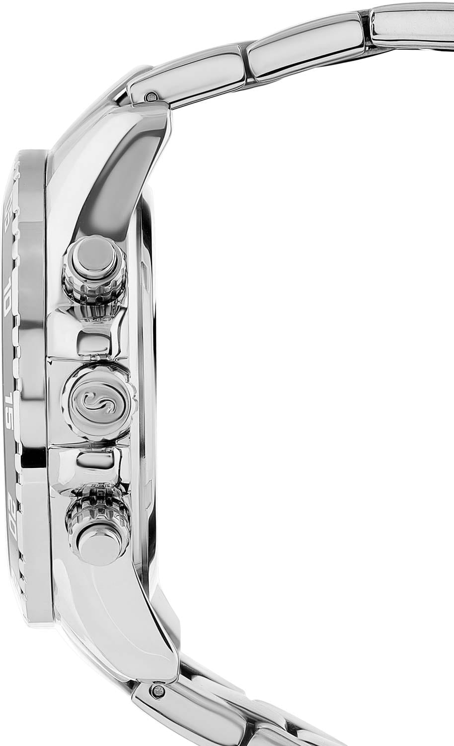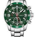 Stuhrling 3957.3 — мощные мужские часы с выразительным спортивным характером и динамичным дизайном. Корпус из нержавеющей стали гармонично сочетается с циферблатом, оформленным рельефным узором и контрастными счётчиками хронографаХронографФункция позволяет измерять отрезки времени с особой точностью: часы, минуты, секунды. Верным признаком хронографа является наличие на циферблате 3 дополнительных окошек-счётчиков.. Широкий безельБезельВнешний ободок, закрепляющий стекло. В спортивных часах так называется поворотное кольцо с делениями на циферблате, выполняет роль таймера – замеряет отрезки времени на шкале. Неподвижный безель – элемент декора. Однонаправленно вращающийся безель на дайверских часах позволяет фиксировать моменты погружения и выныривания на поверхность. с PVD-покрытиемPVDУльтратонкое покрытие наносится в технике вакуумного напыления, сочетает в себе нитрид титана особой прочности со слоем золота или оксида хрома. Несёт в себе декоративную или защитную функцию. подчёркивает брутальный стиль модели, а стрелки и метки с люминесцентным покрытиемЛюминесцентное покрытиеПозволяет считывать показания времени в темноте. Производители наносят на стрелки, часовые индексы, безель или поверхность циферблата светонакопительный состав, дающий холодное свечение. обеспечивают идеальную читаемость в любых условиях. Прочное стекло KrysternaKrysternaKrysterna — инновационное стекло для наручных часов. Благодаря уникальной структуре, Krysterna объединяет ключевые преимущества двух материалов: твердость сапфира, защищающую от царапин, и гибкость минерального стекла, обеспечивающую устойчивость к деформациям. Такая комбинация делает его идеальным решением для часов, подверженных экстремальным нагрузкам, сохраняя при этом оптическую прозрачность. устойчиво к царапинам, сохраняя прозрачность и блеск. Завершает образ стальной браслет с раскладной застёжкойРаскладная застёжкаТакой тип застёжки используется только на браслетах из металла. Она никогда не раскрывается полностью, происходит разделение на 2 и более частей. Раскладывающая застёжка снизит вероятность потери часов к минимуму., гарантирующий комфорт и надёжную фиксацию. Stuhrling — стильная и функциональная модель для уверенных мужчин, ценящих точность и энергию в каждой детали.
