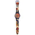 Часы Swatch SO29Z136 — эффектный и надежный аксессуар. Эти часы из коллекции Swatch x Tate Gallery имеют прозрачный матовый корпус темно-синего цвета из биоматериала и органическое стекло с белыми напечатанными индексами. Циферблат и силиконовый ремешок украшены принтом "Женщина и птица в лунном свете" Хуана Миро, а стрелки часов и минут выполнены в синем цвете. Прозрачная матовая петля имеет напечатанный логотип Tate Gallery. "Женщина и птица в лунном свете" Хуан Миро, 1949 год. Ремешок на стандартной застёжке. Внутри часов установлен надежный кварцевый механизм, который обеспечивает точность хода. Эти часы водонепроницаемы до 30 метров, что позволяет не беспокоиться о случайных брызгах или дождевых каплях. Swatch SO29Z136 — это идеальный выбор для тех, кто ценит сочетание стиля, комфорта и функциональности в одном аксессуаре.