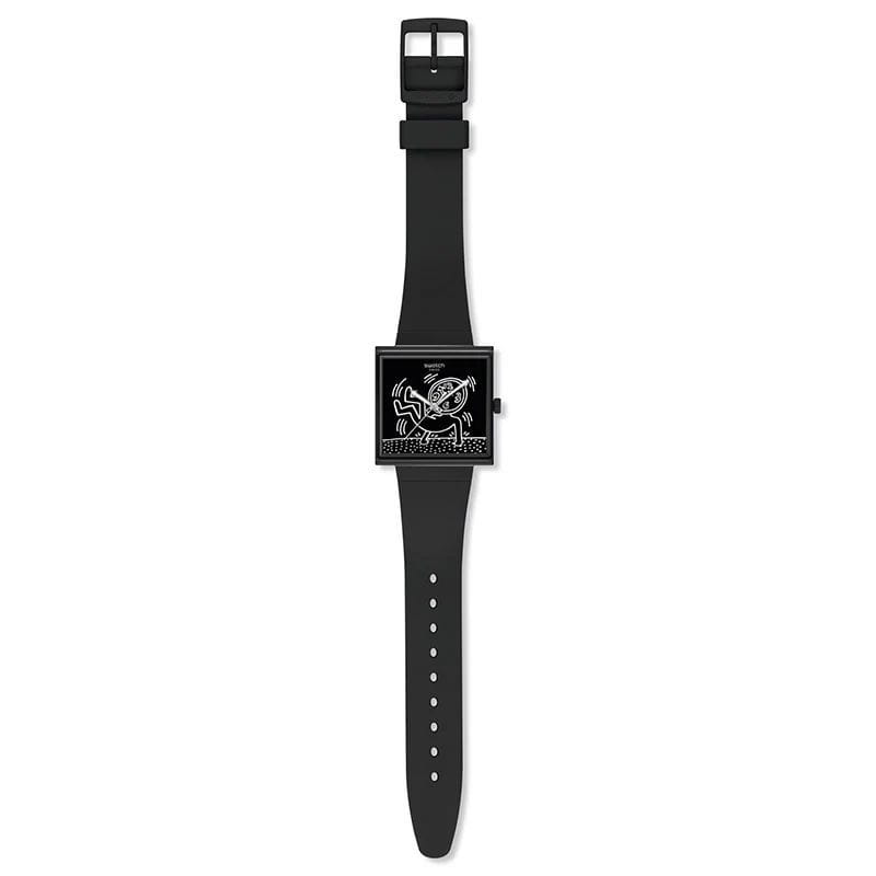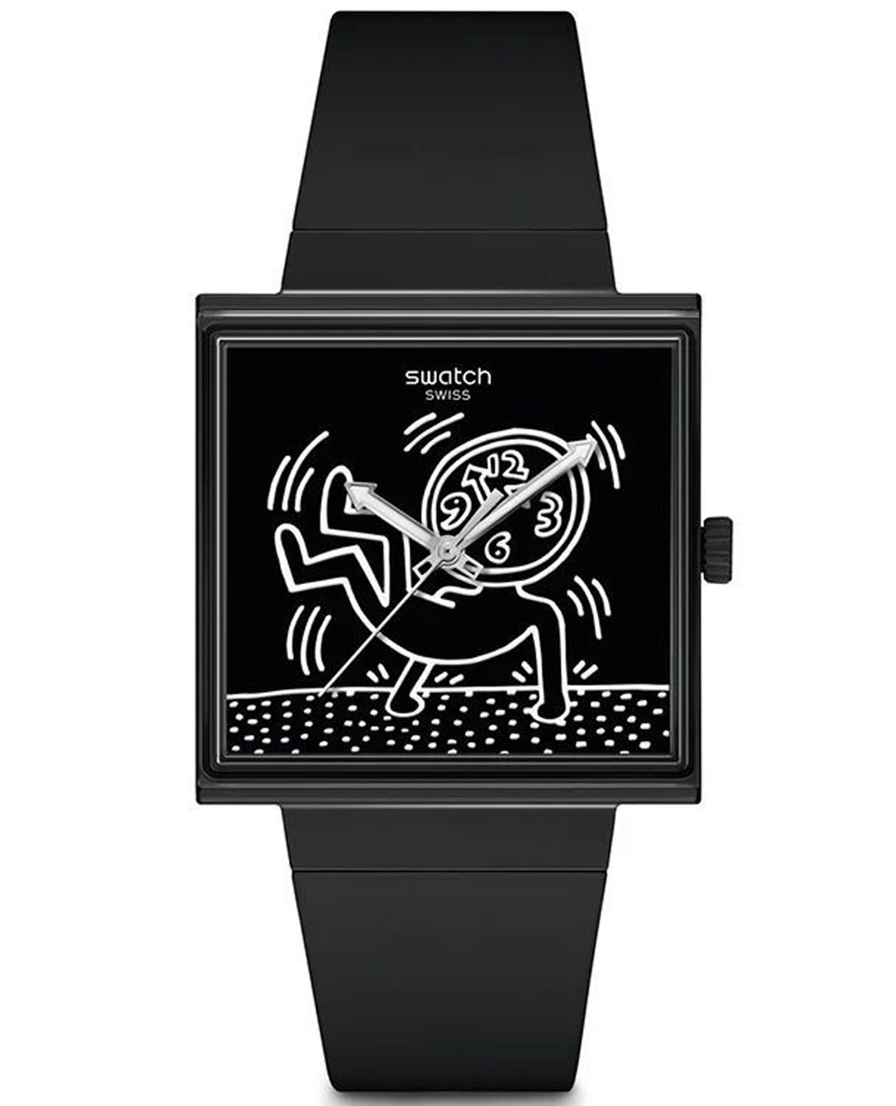Swatch New Gent Bioceramic Standard SO34Z103 "Break Loose Watch" - это стильные квадратные часы с корпусом 41,8x41,8 мм из черной матовой биокерамики с дизайнерским рисунком. Модель оснащена кварцевым механизмом и водонепроницаемостью до 20 метров. Стрелки часов с люминесцентным покрытиемЛюминесцентное покрытиеПозволяет считывать показания времени в темноте. Производители наносят на стрелки, часовые индексы, безель или поверхность циферблата светонакопительный состав, дающий холодное свечение..     Часы имеют черный матовый ремешок из биоматериала и стекло из биоматериала. Эта экологичная модель унисекс сочетает инновационные материалы с необычным черно-белым дизайном, вдохновленным оригинальным Swatch 1983 года, и подходит для тех, кто ценит минимализм и заботу об окружающей среде.