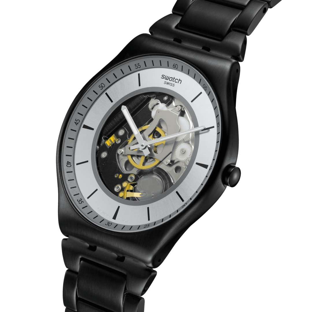 Часы Swatch SS07B113G — это стильный и современный аксессуар для тех, кто ценит лёгкость и комфорт. Часы идеально подойдут как для мужчин, так и для женщин. Особенностью этих ультратонких часов из матированной нержавеющей стали с черным PVDPVDУльтратонкое покрытие наносится в технике вакуумного напыления, сочетает в себе нитрид титана особой прочности со слоем золота или оксида хрома. Несёт в себе декоративную или защитную функцию. покрытием являются открытый серебристый циферблат с радиальной полировкой и черно-серым принтом, а также серое кольцо с черным принтом. Регулируемый браслет из матовой нержавеющей стали с черным PVDPVDУльтратонкое покрытие наносится в технике вакуумного напыления, сочетает в себе нитрид титана особой прочности со слоем золота или оксида хрома. Несёт в себе декоративную или защитную функцию. покрытием, застегивающийся застёжкой «бабочка»Застёжка "бабочка"Такой вид застёжки дополняется предохранителями, помогающими избежать случайного раскрытия браслета. Обладают изящным исполнением. , изящно довершает модель. Часы с минеральным стекломМинеральное стеклоМинеральное стекло представляет собой искусственно выращенный минерал кварца. Такое стекло отличается особой устойчивостью к повреждениям и царапинам. Уступает по некоторым качествам сапфировому стеклу. имеют черные индексы и серебристые стрелки с люминесцентным покрытиемЛюминесцентное покрытиеПозволяет считывать показания времени в темноте. Производители наносят на стрелки, часовые индексы, безель или поверхность циферблата светонакопительный состав, дающий холодное свечение. на циферблате. Водозащита 30 метров делает часы практичными для повседневного использования. Эти часы подойдут для повседневного ношения и станут ярким акцентом в вашем наряде.