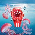 Мужские дайверские часы Swatch LION’S MANE SSCU09R100 — это стильный и современный аксессуар для тех, кто ценит лёгкость и комфорт. Корпус выполнен из биокерамики, который состоит из матовых и блестящих прозрачных частей из биоматериала, диаметром 44 мм и толщиной 15.4 мм, что обеспечивает долговечность и утончённый внешний вид. Циферблат защищён органическим стеклом, устойчивым к повреждениям. Модель оснащена кварцевым механизмом, обеспечивающим высокую точность хода. БезельБезельВнешний ободок, закрепляющий стекло. В спортивных часах так называется поворотное кольцо с делениями на циферблате, выполняет роль таймера – замеряет отрезки времени на шкале. Неподвижный безель – элемент декора. Однонаправленно вращающийся безель на дайверских часах позволяет фиксировать моменты погружения и выныривания на поверхность. из красного просвечивающего биоматериала с серо-белым принтом, светящимся в темноте, и белая матовая заводная головка из биокерамики, размещенная в районе отметки 10 часов. Стрелки и метки с люминесцентным покрытиемЛюминесцентное покрытиеПозволяет считывать показания времени в темноте. Производители наносят на стрелки, часовые индексы, безель или поверхность циферблата светонакопительный состав, дающий холодное свечение.. Силиконовый ремешок на стандартной застёжке гармонично дополняет корпус и обеспечивает комфортное ношение. Водозащита 100 метров позволит плавать, нырять и заниматься другими водными видами спорта. Эти часы подойдут для повседневного ношения и станут ярким акцентом в вашем наряде.