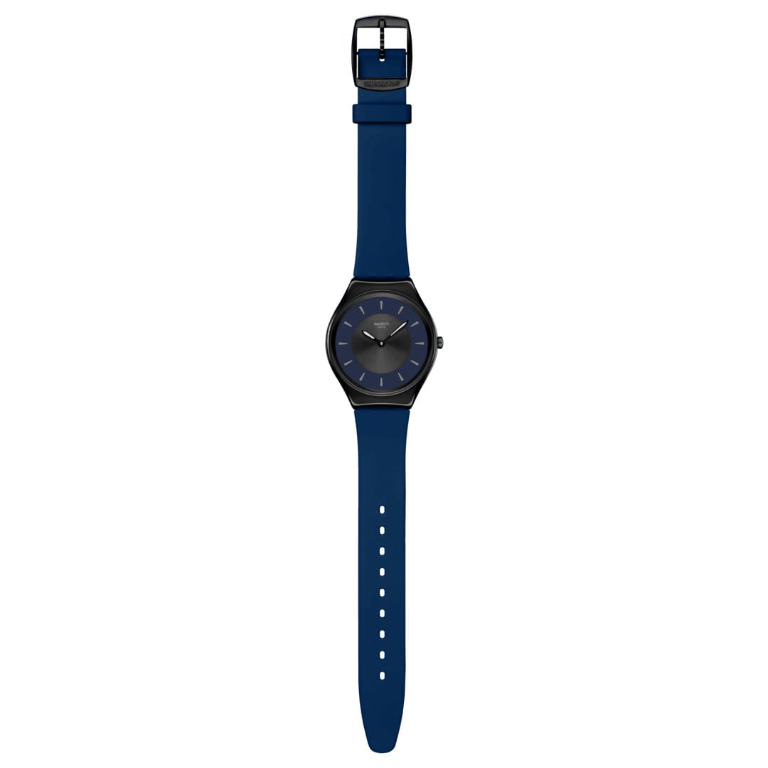 Часы Swatch SYXB108 — это стильный и современный аксессуар для тех, кто ценит лёгкость и комфорт. Часы идеально подойдут как для мужчин, так и для женщин. Эти ультратонкие часы имеют черный циферблат с радиальной полировкой, темно-синим внешним кольцевым принтом и серыми часовыми индексами, а также черные часовую и минутную стрелки с люминесцентным покрытиемЛюминесцентное покрытиеПозволяет считывать показания времени в темноте. Производители наносят на стрелки, часовые индексы, безель или поверхность циферблата светонакопительный состав, дающий холодное свечение.. Блестящий корпус и пряжка из нержавеющей стали с PVDPVDУльтратонкое покрытие наносится в технике вакуумного напыления, сочетает в себе нитрид титана особой прочности со слоем золота или оксида хрома. Несёт в себе декоративную или защитную функцию. покрытием прекрасно сочетаются с матовым темно-синим ремешком с тренчиком в тон и серой изнанкой. Водозащита 30 метров делает часы практичными для повседневного использования. Эти часы подойдут для повседневного ношения и станут ярким акцентом в вашем наряде.