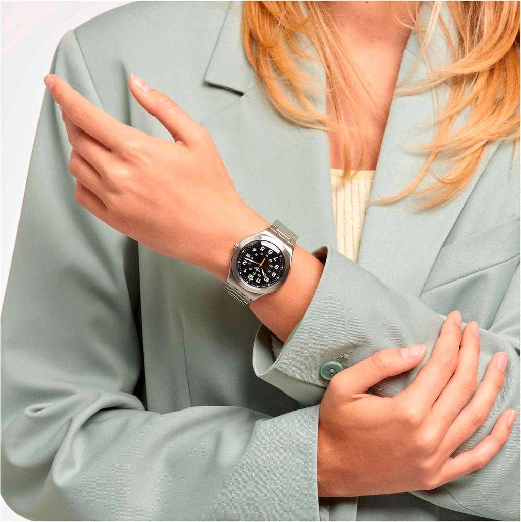 Часы Swatch YWS439GC — это стильный и современный аксессуар для тех, кто ценит лёгкость и комфорт. Диаметр круглого корпуса из прочной нержавеющей стали равен 41 мм. Стальной браслет на застёжке «бабочка» с кнопкамиЗастёжка "бабочка"Такой вид застёжки дополняется предохранителями, помогающими избежать случайного раскрытия браслета. Обладают изящным исполнением. обеспечивает надёжную фиксацию и комфортное ношение. Люминесцентное покрытиеЛюминесцентное покрытиеПозволяет считывать показания времени в темноте. Производители наносят на стрелки, часовые индексы, безель или поверхность циферблата светонакопительный состав, дающий холодное свечение. стрелок и меток позволит следить за временем даже в полной темноте. Окошко даты в положении 3 часа. Метки в виде арабских цифр. Циферблат выполнен по технологии Sunray (солнечные лучи). Водозащита 30 метров делает часы практичными для повседневного использования. Эти часы подойдут для повседневного ношения и станут ярким акцентом.