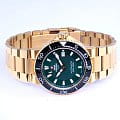 Мужские швейцарские наручные часы с вращающимся безелемБезельВнешний ободок, закрепляющий стекло. В спортивных часах так называется поворотное кольцо с делениями на циферблате, выполняет роль таймера – замеряет отрезки времени на шкале. Неподвижный безель – элемент декора. Однонаправленно вращающийся безель на дайверских часах позволяет фиксировать моменты погружения и выныривания на поверхность. Swiss Military by Chrono Automatic Dive SMA34086.06, механический механизм (автоматический калибр) с высокой точностью. Сапфировое стеклоСапфировое стеклоПрочный и надёжный материал из кристалла сапфира синтетического происхождения, характеризующийся особой твёрдостью и устойчивостью к царапинам и повреждениям. устойчивое к появлению царапин, обладающее высокой прозрачностью. Класс водозащиты: 200 метров, позволит плавать, нырять и заниматься другими водными видами спорта. Корпус часов изготовлен из стали с PVD-покрытиемPVDУльтратонкое покрытие наносится в технике вакуумного напыления, сочетает в себе нитрид титана особой прочности со слоем золота или оксида хрома. Несёт в себе декоративную или защитную функцию. золотого цвета. На зеленом циферблате центральные часовая, минутная и секундная стрелки и апертура даты в позиции 3 часов. Вращающийся безельБезельВнешний ободок, закрепляющий стекло. В спортивных часах так называется поворотное кольцо с делениями на циферблате, выполняет роль таймера – замеряет отрезки времени на шкале. Неподвижный безель – элемент декора. Однонаправленно вращающийся безель на дайверских часах позволяет фиксировать моменты погружения и выныривания на поверхность. черного цвета с числовыми делениями и завинчивающаяся заводная головка с защитой. Стальной браслет с PVD-покрытиемPVDУльтратонкое покрытие наносится в технике вакуумного напыления, сочетает в себе нитрид титана особой прочности со слоем золота или оксида хрома. Несёт в себе декоративную или защитную функцию. золотого цвета, раскладывающаяся застёжкаРаскладная застёжкаТакой тип застёжки используется только на браслетах из металла. Она никогда не раскрывается полностью, происходит разделение на 2 и более частей. Раскладывающая застёжка снизит вероятность потери часов к минимуму..