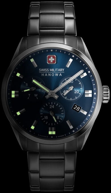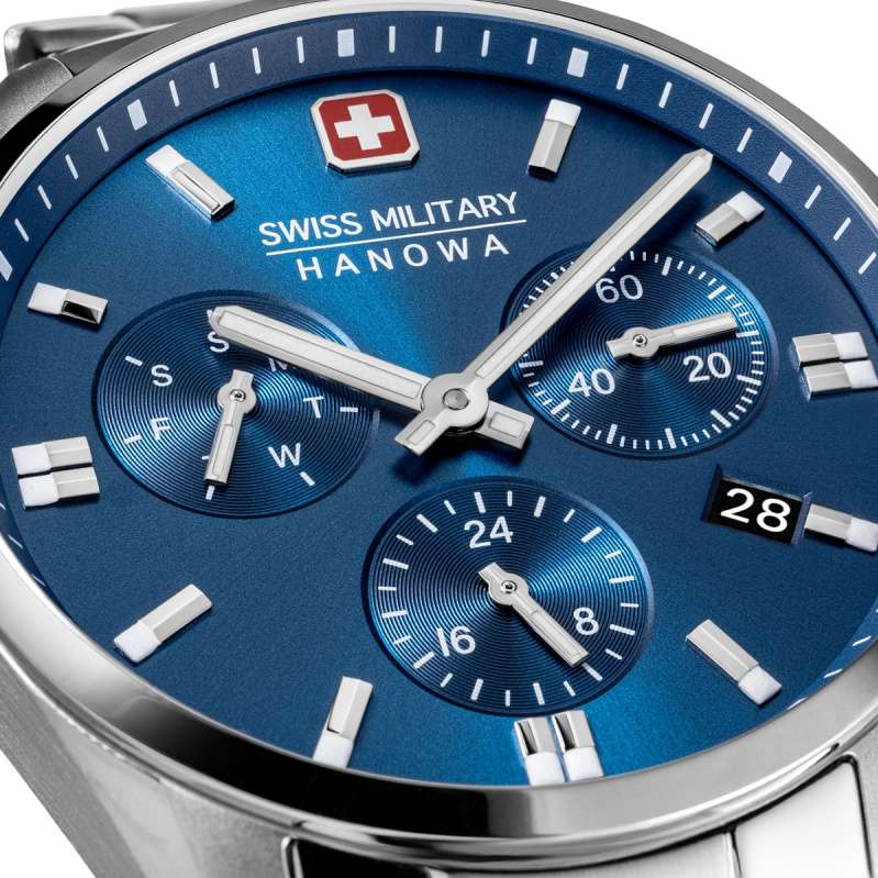 Мужские швейцарские часы Swiss Military Hanowa SMWGK0005602 – это элегантные часы, сочетающие в себе классический дизайн и современную функциональность. Корпус из нержавеющей стали диаметром 43 мм сбалансирован и элегантен. Сапфировое стеклоСапфировое стеклоПрочный и надёжный материал из кристалла сапфира синтетического происхождения, характеризующийся особой твёрдостью и устойчивостью к царапинам и повреждениям. с антибликовым покрытием защищает циферблат от царапин и обеспечивает отличную читаемость при любом освещении. Браслет с раскладной застёжкойРаскладная застёжкаТакой тип застёжки используется только на браслетах из металла. Она никогда не раскрывается полностью, происходит разделение на 2 и более частей. Раскладывающая застёжка снизит вероятность потери часов к минимуму. идеально дополняют дизайн часов, обеспечивая комфортное ношение. Люминесцентное покрытиеЛюминесцентное покрытиеПозволяет считывать показания времени в темноте. Производители наносят на стрелки, часовые индексы, безель или поверхность циферблата светонакопительный состав, дающий холодное свечение. стрелок и меток позволит вам следить за временем даже в полной темноте. Индикатор даты в положении 4 часа, индикатор дня недели; 24-часовой формат. Водонепроницаемость до 100 метров хорошо подходят для повседневного ношения и занятий водными видами спорта.