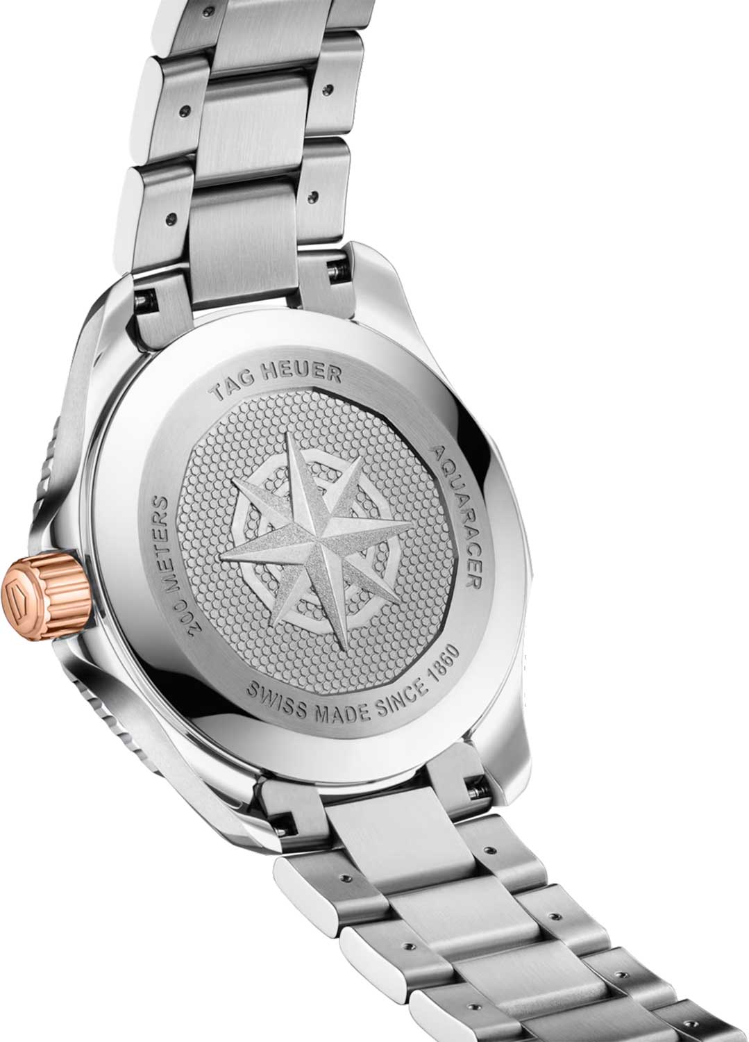 Часы TAG Heuer Aquaracer Professional 200 Solargraph WBP1121.BB0003. Высокая функциональность в нем сочетается с изысканной элегантностью, в то время как сапфировое стеклоСапфировое стеклоПрочный и надёжный материал из кристалла сапфира синтетического происхождения, характеризующийся особой твёрдостью и устойчивостью к царапинам и повреждениям. обеспечивает сверхточную разборчивость.Часы-хронографХронографФункция позволяет измерять отрезки времени с особой точностью: часы, минуты, секунды. Верным признаком хронографа является наличие на циферблате 3 дополнительных окошек-счётчиков.. Кварцевый механизм с высокой точностью. Класс водозащиты: 200 метров, позволит плавать, нырять и заниматься другими водными видами спорта. Часы с люминесцентным покрытиемЛюминесцентное покрытиеПозволяет считывать показания времени в темноте. Производители наносят на стрелки, часовые индексы, безель или поверхность циферблата светонакопительный состав, дающий холодное свечение. Superluminova. Корпус часов изготовлен из стали, безельБезельВнешний ободок, закрепляющий стекло. В спортивных часах так называется поворотное кольцо с делениями на циферблате, выполняет роль таймера – замеряет отрезки времени на шкале. Неподвижный безель – элемент декора. Однонаправленно вращающийся безель на дайверских часах позволяет фиксировать моменты погружения и выныривания на поверхность. из стали с 18-каратным золотом18-каратное золотоОбозначение по каратной системе пробирования, оно показывает, сколько драгоценного металла содержится в изделии. 18 карат - в составе 75% чистого золота, соответствует 750 пробе.