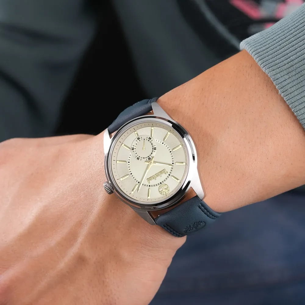 Американские мужские часы Timberland TDWGA0029701 имеют кварцевый механизм с высокой точностью. Класс водозащиты: 50 метров, позволит защитить корпус от случайных брызг или капель дождя. Корпус часов изготовлен из стали. Прочное минеральное стеклоМинеральное стеклоМинеральное стекло представляет собой искусственно выращенный минерал кварца. Такое стекло отличается особой устойчивостью к повреждениям и царапинам. Уступает по некоторым качествам сапфировому стеклу.. Метки c люминесцентным покрытиемЛюминесцентное покрытиеПозволяет считывать показания времени в темноте. Производители наносят на стрелки, часовые индексы, безель или поверхность циферблата светонакопительный состав, дающий холодное свечение.. Кожаный ремешок с классической застежкой и системой быстрой замены.