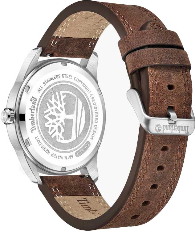 Американские мужские часы Timberland Northbridge TDWGB2230702 имеют кварцевый механизм с высокой точностью. Класс водозащиты: 50 метров, позволит защитить корпус от случайных брызг или капель дождя. Корпус часов изготовлен из стали. Прочное минеральное стеклоМинеральное стеклоМинеральное стекло представляет собой искусственно выращенный минерал кварца. Такое стекло отличается особой устойчивостью к повреждениям и царапинам. Уступает по некоторым качествам сапфировому стеклу.. Стрелки c люминесцентным покрытиемЛюминесцентное покрытиеПозволяет считывать показания времени в темноте. Производители наносят на стрелки, часовые индексы, безель или поверхность циферблата светонакопительный состав, дающий холодное свечение.. Кожаный ремешок с классической застежкой и системой быстрой замены.