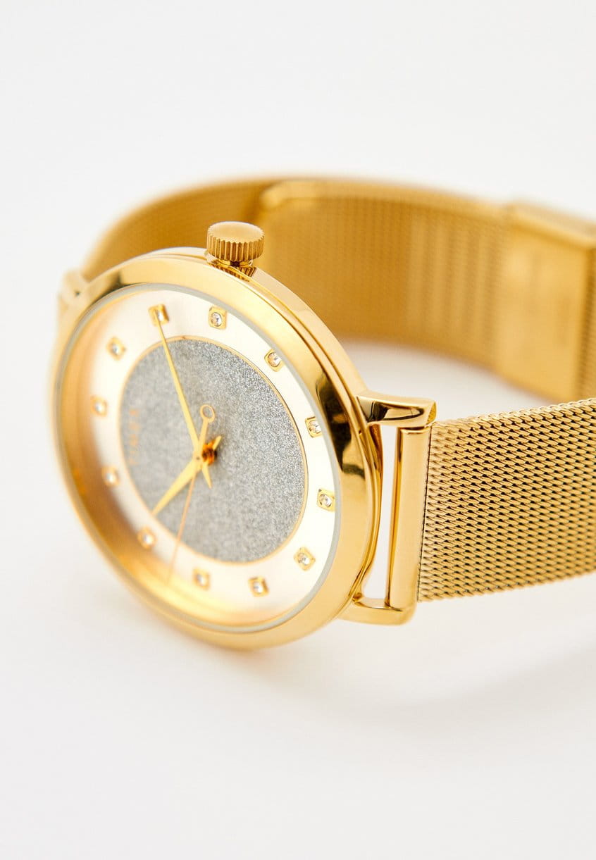 Наручные часы Timex TW2U67100 — изысканный аксессуар, вдохновленный звездами ночного неба, который подчеркнет вашу элегантность и стиль. Эти часы произведены в США и оснащены надежным кварцевым механизмом, что гарантирует их точность и долговечность. Корпус часов выполнен из нержавеющей стали с износостойким PVDPVDУльтратонкое покрытие наносится в технике вакуумного напыления, сочетает в себе нитрид титана особой прочности со слоем золота или оксида хрома. Несёт в себе декоративную или защитную функцию. покрытием, придающим им благородный вид. Серебристый циферблат украшен изящными кристаллами, создающими эффект звездного неба, а метки в виде точек добавляют часам утонченности. Рифленая заводная головка облегчает настройку времени. Часы оснащены прочным минеральным стекломМинеральное стеклоМинеральное стекло представляет собой искусственно выращенный минерал кварца. Такое стекло отличается особой устойчивостью к повреждениям и царапинам. Уступает по некоторым качествам сапфировому стеклу., устойчивым к царапинам, и водозащитой 50WR, что защищает их от случайных контактов с водой. Диаметр корпуса составляет 38 мм, а ширина браслета — 18 мм, что обеспечивает удобную посадку на запястье. Стальной браслет миланского плетения с PVDPVDУльтратонкое покрытие наносится в технике вакуумного напыления, сочетает в себе нитрид титана особой прочности со слоем золота или оксида хрома. Несёт в себе декоративную или защитную функцию. покрытием и раскладным замкомРаскладной замокДанный вариант застежки используется только на часах с металлическим браслетом. Отличительная особенность такого крепления в том, что длина браслета становится универсальной и вы можете самостоятельно отрегулировать нужный вам размер – застежка просто двигается по браслету часов. добавляет модели утонченности и комфорта. Этот аксессуар станет изысканным дополнением вашего образа, привнося в него нотку роскоши и элегантности.