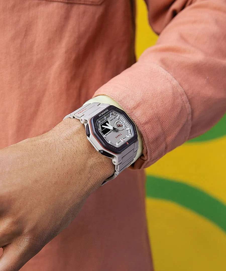 Часы Timex TW2V35500 — идеальный выбор для любителей активного образа жизни и приключений. Этот надежный аксессуар из США сочетает в себе передовые технологии и прочный дизайн. Кварцевый механизм обеспечивает точность хода, а корпус из прочного пластика делает часы легкими и удобными в ношении. Бежевый циферблат оснащен подсветкой Indiglo, а стрелки и метки с люминесцентным покрытиемЛюминесцентное покрытиеПозволяет считывать показания времени в темноте. Производители наносят на стрелки, часовые индексы, безель или поверхность циферблата светонакопительный состав, дающий холодное свечение. позволяют легко считывать время даже в темноте. Минеральное стеклоМинеральное стеклоМинеральное стекло представляет собой искусственно выращенный минерал кварца. Такое стекло отличается особой устойчивостью к повреждениям и царапинам. Уступает по некоторым качествам сапфировому стеклу. защищает циферблат от царапин и повреждений, а водозащита 100WR позволяет не беспокоиться о часах в условиях повышенной влажности или дождя. Эти часы оснащены множеством полезных функций, включая электронный SPLIT-хронографХронографФункция позволяет измерять отрезки времени с особой точностью: часы, минуты, секунды. Верным признаком хронографа является наличие на циферблате 3 дополнительных окошек-счётчиков. с секундомеромСекундомерСекундоме́р — прибор, способный измерять интервалы времени с точностью до долей секунды., таймерТаймерОтсчитывает секунды в обратном направлении в заданном интервале времени. обратного отсчета и мировое времяМировое время Полезное часовое усложнение, отображающее время в основных городах и известных областях по всему миру, оно связано с часовыми поясами, удобно для путешественников и бизнесменов. для 48 городов. Ретроградный указатель дня недели и календарь с отображением числа добавляют функциональности и удобства в повседневном использовании. Часы Timex TW2V35500 имеют прочный корпус с противоударной защитой и стальную заднюю крышку, которая крепится на 4-х винтах для дополнительной надежности. Пластиковый ремешок с классической застежкой обеспечивает комфортное ношение и надежную фиксацию на запястье. Эти часы станут отличным спутником в любых приключениях, предлагая стильный внешний вид и функциональность, необходимую для современного активного человека.