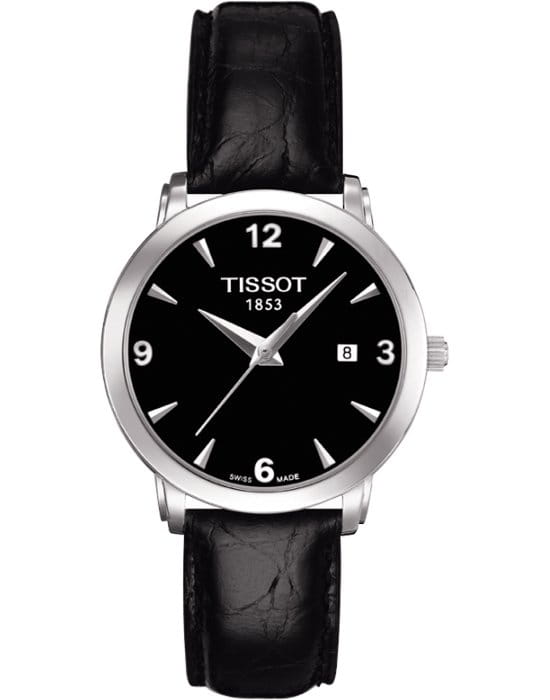 TISSOT T0572101605700 T-Classic Everytime Quartz - женские кварцевые наручные часы Корпус этих часов небольшого размера (28 мм) и выполнен из нержавеющей стали L316 металлического цвета Модель TISSOT T0572101605700 T-Classic Everytime Quartz имеет устойчивое к царапинам сапфировое стекло, ремешок из натуральной кожи черного цвета, черный циферблат Калибр механизма: ETA F03111 Класс водозащиты: 30 м / 3 АТМ (защита от брызг и случайных капель) Дополнительные функции и особенности: отображение числа Полная заводская комплектация TISSOT: оригинальные часы, фирменная коробка, инструкция, сервисная книжка, роман о часовой фабрике, миникаталог, замшевый фирменный чехол черного цвета для хранения и/или переноски часов, кассовый и товарный чеки Международная гарантия 2 года Производство и сборка: Швейцария