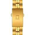 Роскошный золотистый оттенок образован благодаря PVD-покрытиюPVDУльтратонкое покрытие наносится в технике вакуумного напыления, сочетает в себе нитрид титана особой прочности со слоем золота или оксида хрома. Несёт в себе декоративную или защитную функцию., цвет придаёт аксессуару большую изысканность, несмотря на общее лаконичное исполнение. Работу часов обеспечивает кварцевый механизм ETA F06.111 с высокой точностью хода. Сапфировое стекло отличается устойчивостью к появлению царапин. Стрелки с люминесцентной подсветкойЛюминесцентное покрытиеПозволяет считывать показания времени в темноте. Производители наносят на стрелки, часовые индексы, безель или поверхность циферблата светонакопительный состав, дающий холодное свечение.. Индикатор EOLEOLПредставляет собой систему, уведомляющую владельца часов о необходимости замены элемента питания. За 2 недели до полного разряда батарейки секундная стрелка перестаёт ходить чётко и начинает перепрыгивать на 3-4 деления.. Апертура даты. Габариты: 39 x 39 x 9,1 мм.