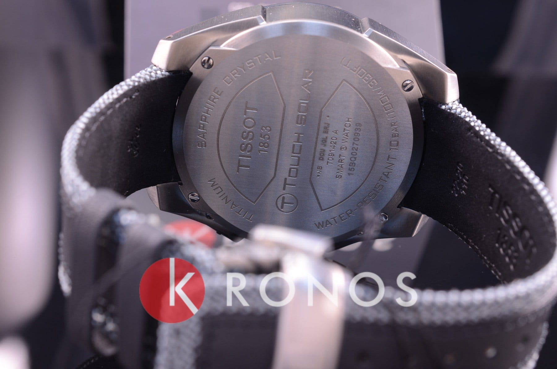 Современная модель в спортивном и динамичном стиле оснащена удобным экраном с тактильным сапфировым стеклом. Часы работают от кварцевого механизма ETA E84.301, также они способны получать питание от . Прибор для измерения времени превращён в многофункциональный мини-компьютер, есть опции альтиметра, компаса, таймера, будильника, вечного календаряВечный календарьКлассическое часовое усложнение, представляющее собой календарь, рассчитанный на несколько лет вперёд (стандартно – до 2099 года). Определяет текущую дату, день недели, месяц., хронографаХронографФункция позволяет измерять отрезки времени с особой точностью: часы, минуты, секунды. Верным признаком хронографа является наличие на циферблате 3 дополнительных окошек-счётчиков.. Титановый корпус с чёрным PVD-покрытиемPVDУльтратонкое покрытие наносится в технике вакуумного напыления, сочетает в себе нитрид титана особой прочности со слоем золота или оксида хрома. Несёт в себе декоративную или защитную функцию. минимизирует негативное воздействие магнитных полей. Габариты: 45 x 45 x 13 мм.