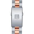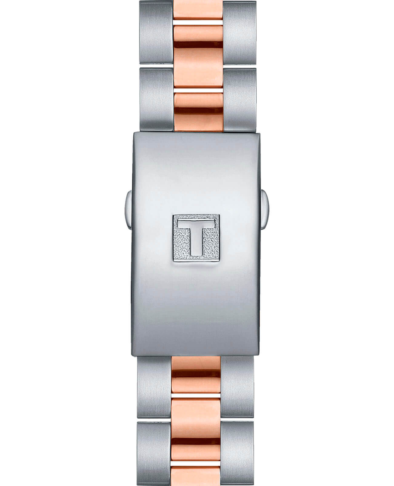 Спортивные элементы дизайна переплетаются с классическими, весьма женственно выглядят нежно-розовые счётчики и стрелки. Модель и центральный ряд звеньев браслета имеют PVD-покрытиеPVDУльтратонкое покрытие наносится в технике вакуумного напыления, сочетает в себе нитрид титана особой прочности со слоем золота или оксида хрома. Несёт в себе декоративную или защитную функцию. корпуса в цвете розового золота. Кварцевый калибр ETA G15.212 обеспечивает высокую точность хода. Водонепроницаемость при давлении 10 бар. Безопасная застёжка не допустит случайное расстёгивание браслета. Окошко даты, секундомер. Габариты: 38 x 38 x 10,5 мм.