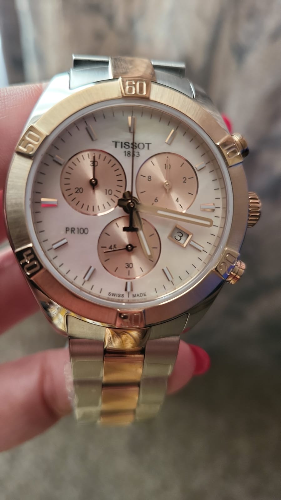 Женские наручные часы из коллекции PR 100 можно носить в качестве дополнения к любому наряду - стильный хронографХронографФункция позволяет измерять отрезки времени с особой точностью: часы, минуты, секунды. Верным признаком хронографа является наличие на циферблате 3 дополнительных окошек-счётчиков. с перламутровым циферблатом идеально смотрится на запястье.