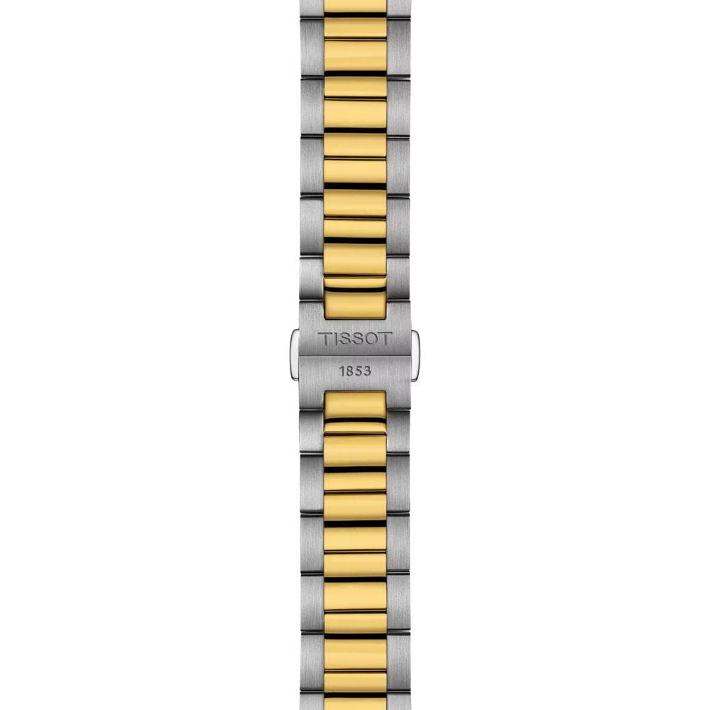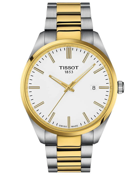 Tissot PR 100 40mm (T150.410.22.011.00) — классическая мужская модель, сочетающая строгий дизайн и швейцарскую надёжность. Корпус диаметром 40 мм изготовлен из нержавеющей стали, а элегантный белый циферблат с солнечным узором дополнен минималистичными метками и окошком даты на «3 часах». За точность отвечает швейцарский кварцевый механизм, а циферблат защищён сапфировым стекломСапфировое стеклоПрочный и надёжный материал из кристалла сапфира синтетического происхождения, характеризующийся особой твёрдостью и устойчивостью к царапинам и повреждениям., устойчивым к царапинам. Браслет из нержавеющей стали с частичным PVD-покрытиемPVDУльтратонкое покрытие наносится в технике вакуумного напыления, сочетает в себе нитрид титана особой прочности со слоем золота или оксида хрома. Несёт в себе декоративную или защитную функцию. на застёжке «бабочка» с кнопкамиЗастёжка "бабочка"Такой вид застёжки дополняется предохранителями, помогающими избежать случайного раскрытия браслета. Обладают изящным исполнением. , что обеспечивает удобство и надёжность в ежедневной носке.